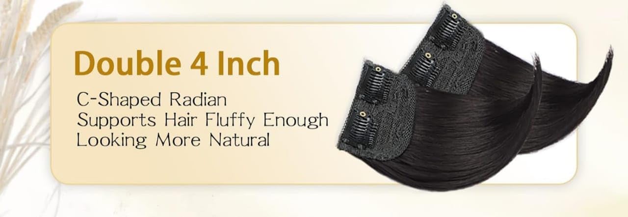 Two clips Feature : 2 clips per pack , you can wear the hair pad on top of head to get a high and fluffy ponytail, on both sides to add volume for both center parting and side parting, or back of head to make your hair look thicker. 2clips make the hairpieces stay securely without falling, comfortable for all day wear.