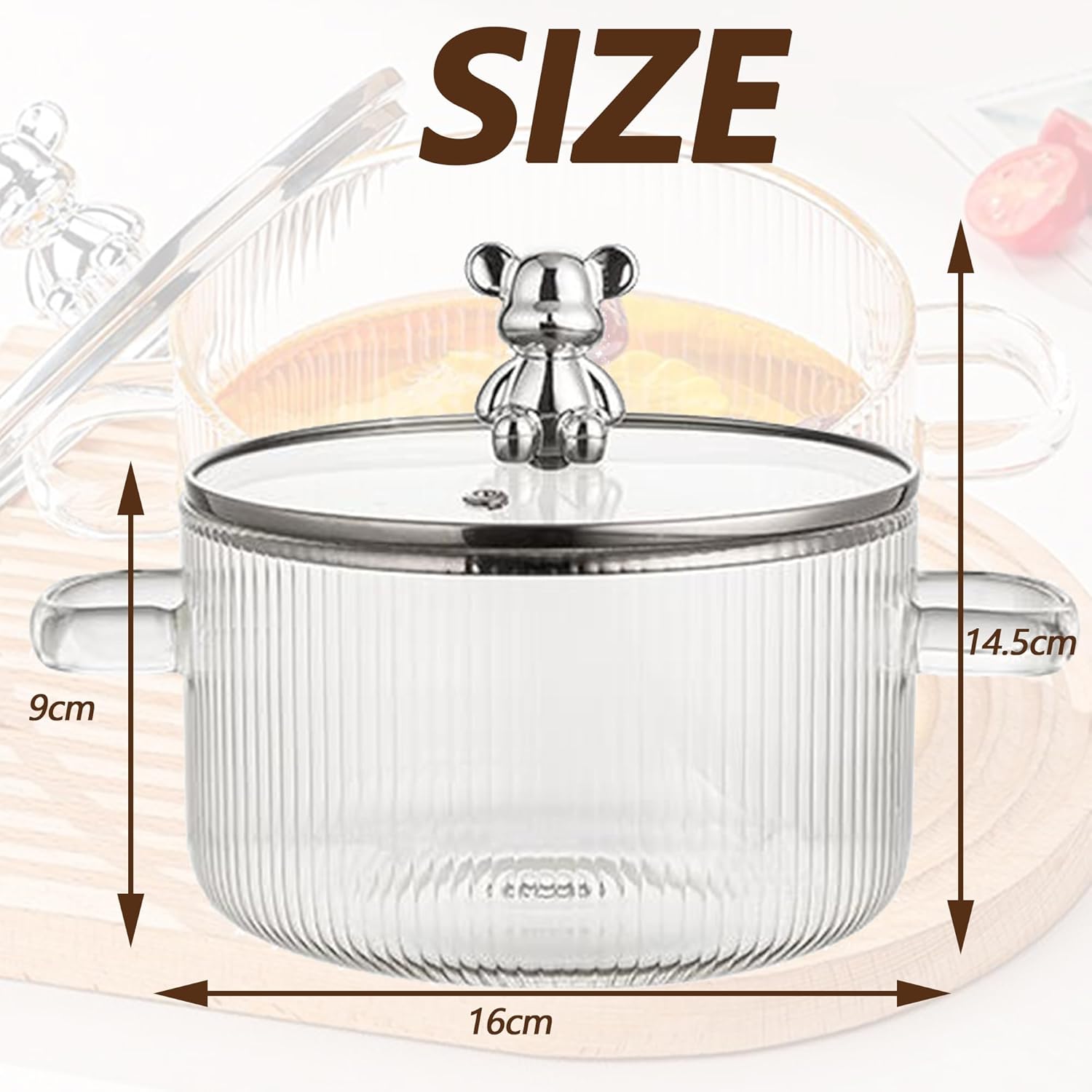1.Material: The glass saucepan is made of high-quality borosilicate glass, lead-free, non-toxic, and will not react with food or change the taste, is healthier than plastic or stainless steel cooking set.