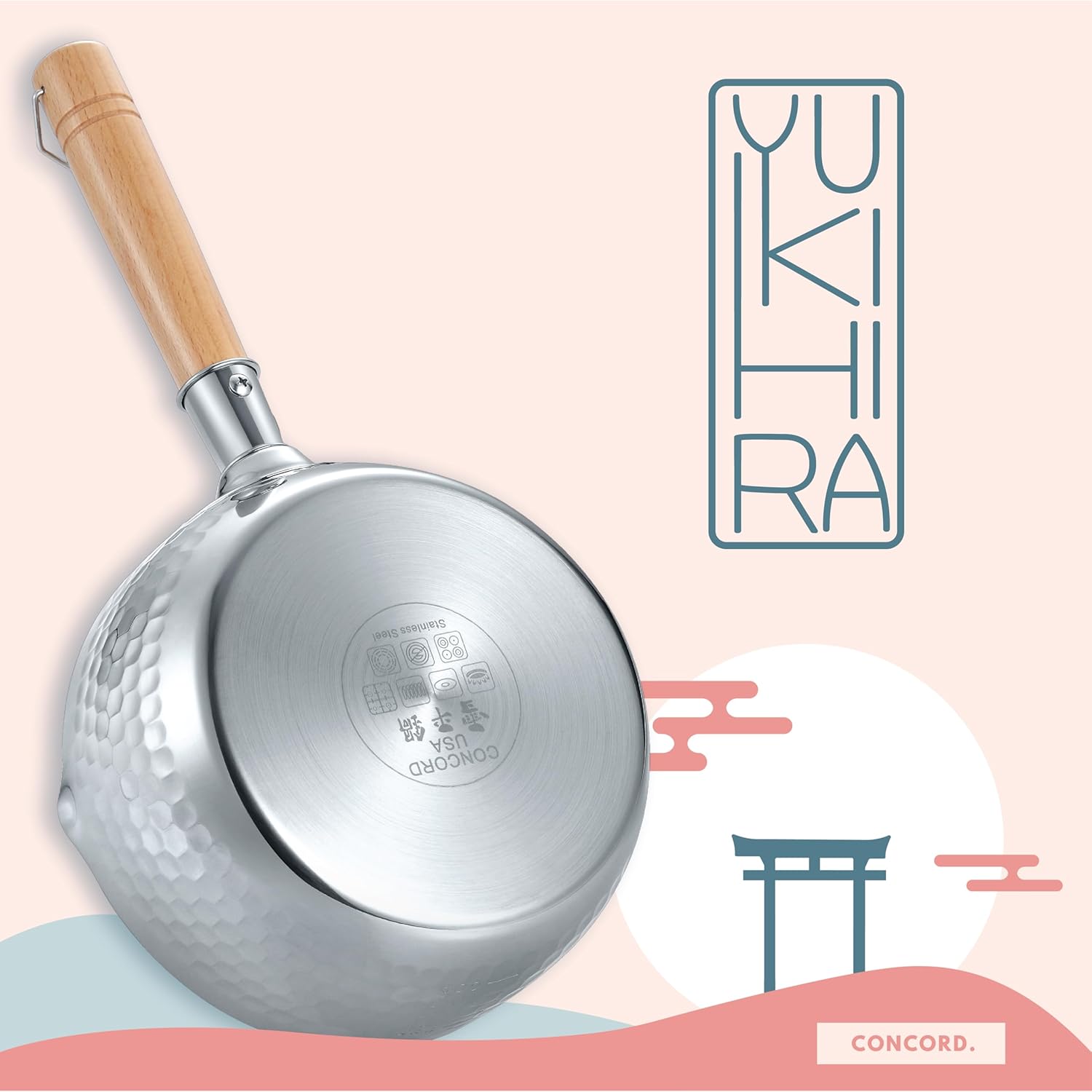 (1 PC) – CONCORD 1.9l Stainless Steel Yukihira Pan. Traditional Japanese Saucepan with Wood Handle. Great for Ramen, Tempura, Milk, etc.