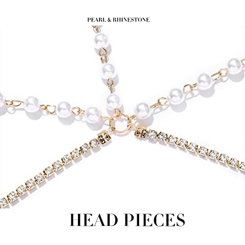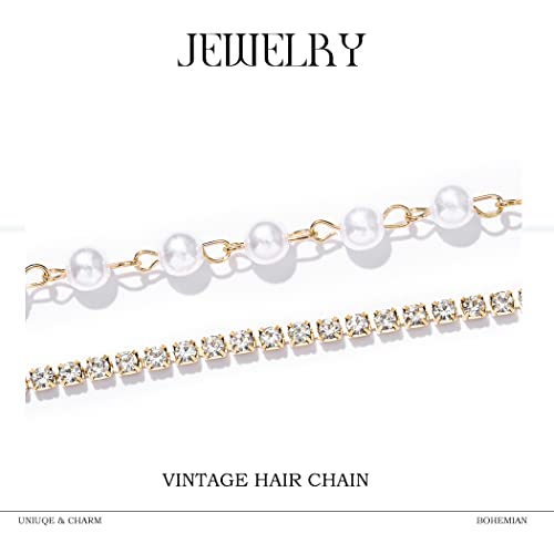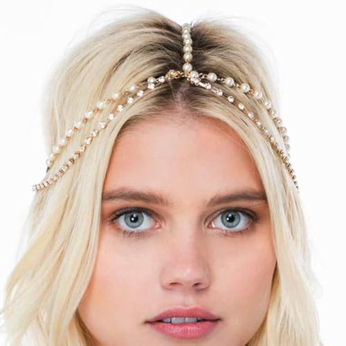 1 Pcs PremiumBoho Pearl Head Chain Vintage Crystal Headpieces Wedding Rhinestone Hair Jewelry Party Festival Hair Accessories for Women and Girls (Gold)