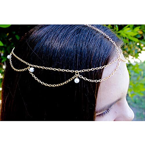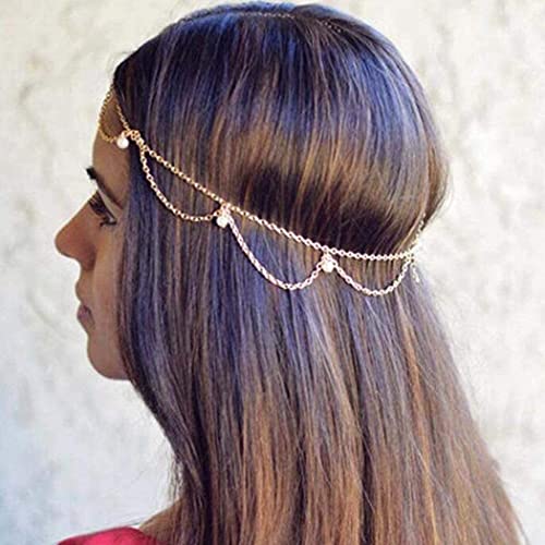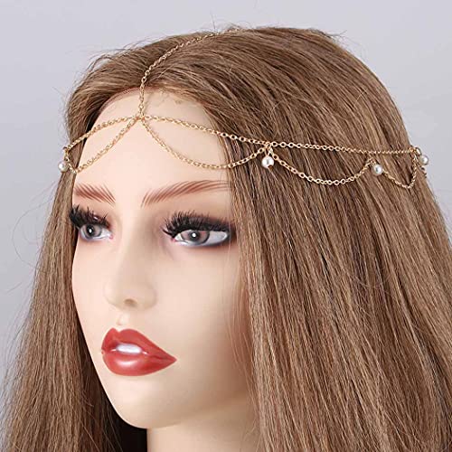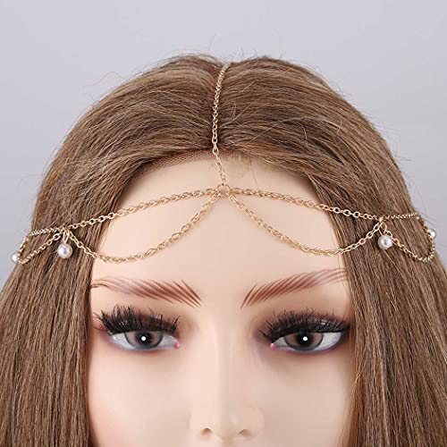 1 Pcs PremiumPearl Head Chain Jewelry Gold Hair Chain Boho Headpiece Festival Hair Jewelry for Women and Girls