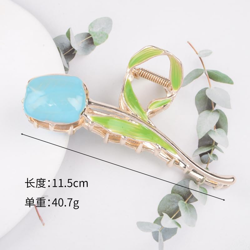 1 pcs Tulip Flower Hair Claw Clips for Women and Girls – Elegant Pastel Enamel Hair Accessories with Gold Leaf Design – Strong Grip Hair Clamps for Thick & Thin Hair (random color)