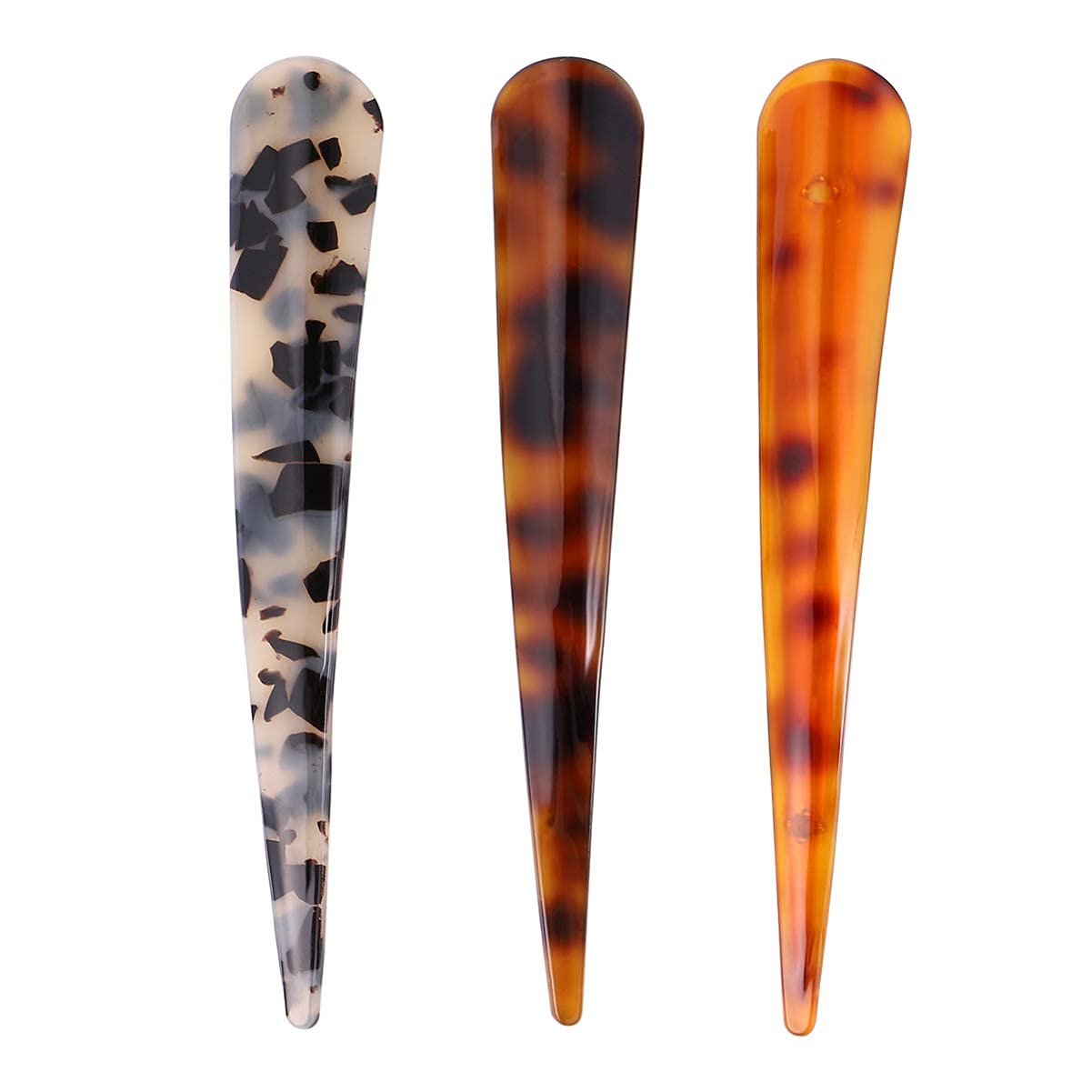 Large alligator clips, clip force large, long and thick hair, it can easily work. It is very convenient to use. The surface is very smooth and the color looks like a retro pattern. duckbill clips have a lot of small teeth, non-slip solid! Very stylish, suitable for a variety of hair and occasions. Specifications: Material: Acetate resin and alloy clip. Design: Acetate resin duckbill clips alligator hair clips, Design Styles with Ink color and texture hair accessories Enough to match your various hairstyles.