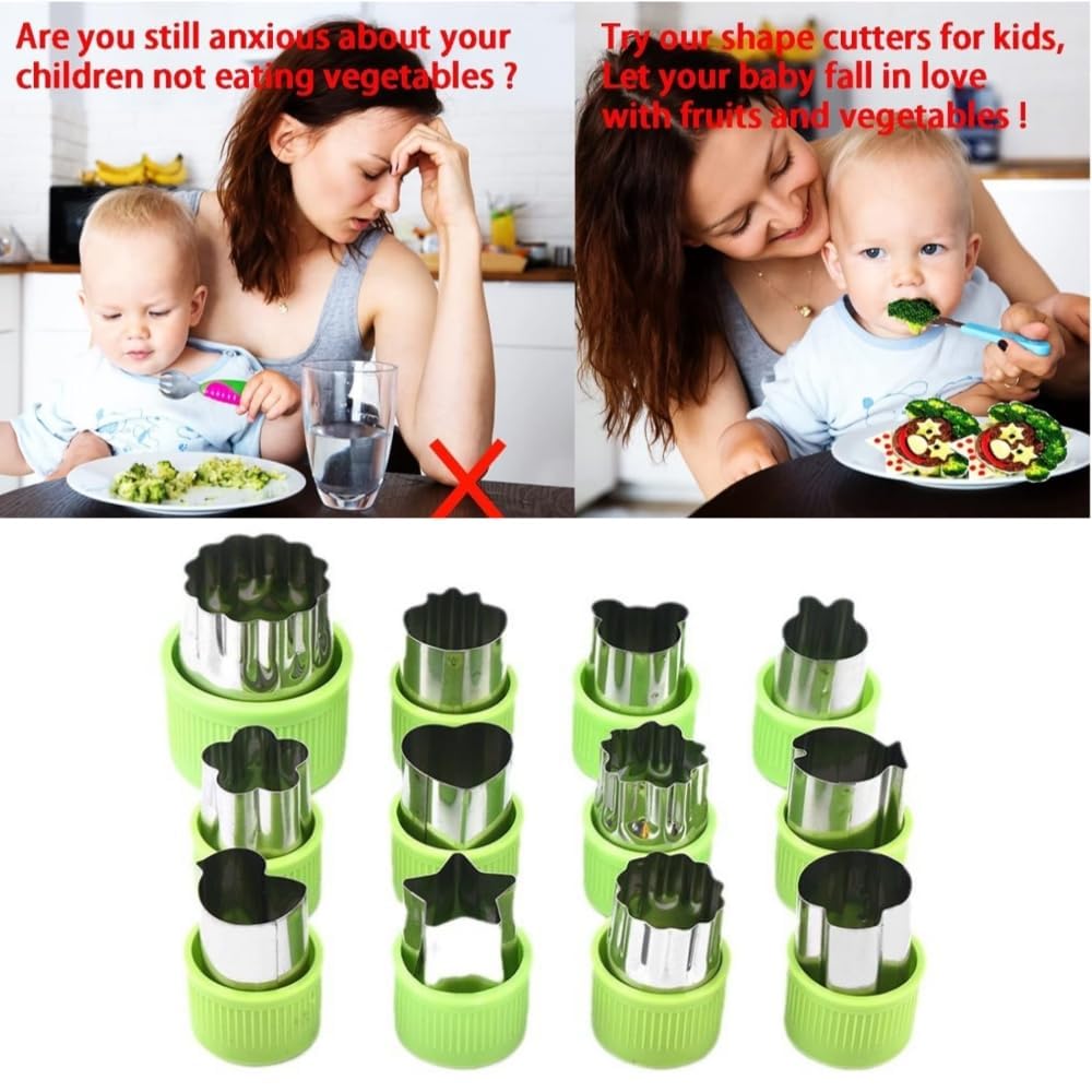 MULTI-VERSATILE AND OCCASIONS : 12 different fruit and vegetable cutters in a range of shapes can cut meals, cookie, cake, sushi, fruit, vegetable, pudding, butterfly noodle and more. Help to make more creative foods and improve kids’ interests in foods. Great for any occasions such as Birthdays, thanksgiving, Christmas, Baby Shower and Party.
