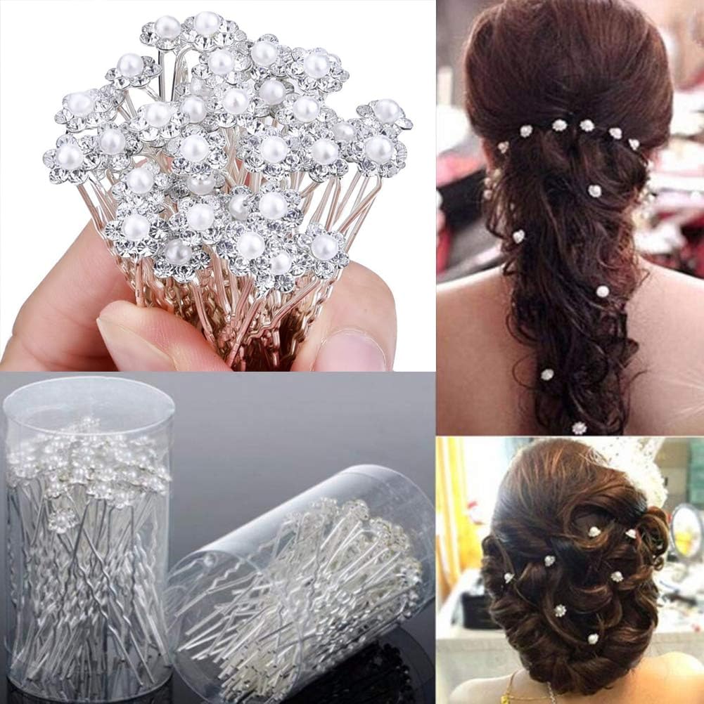 (12pcs) Diamond Pearl U Pins Hair Accessories for Women & Girls – Decoration Pearls Beads Hair Clip for Bride Hairstyle – For Wedding/Parties (MN01)