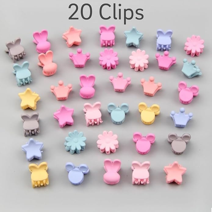 Enjoy 20 adorable mini claw hair clips in a delightful assortment of mixed colors, adding a touch of charm to your baby girl’s hairstyles.