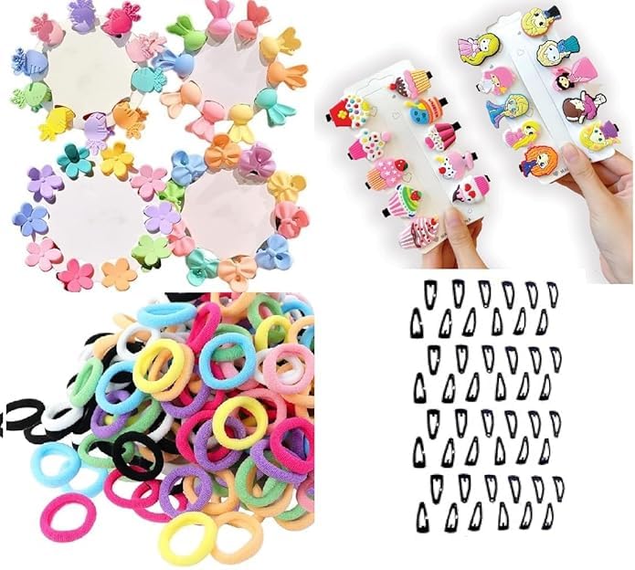 Includes 100 mini rubber bands, 48 tic tac clips, 20 baby hair clips, and 14 cartoon-themed hair pins for versatile styling options Includes 100 mini rubber bands, 48 tic tac clips, 20 baby hair clips, and 14 cartoon-themed hair pins for versatile styling options