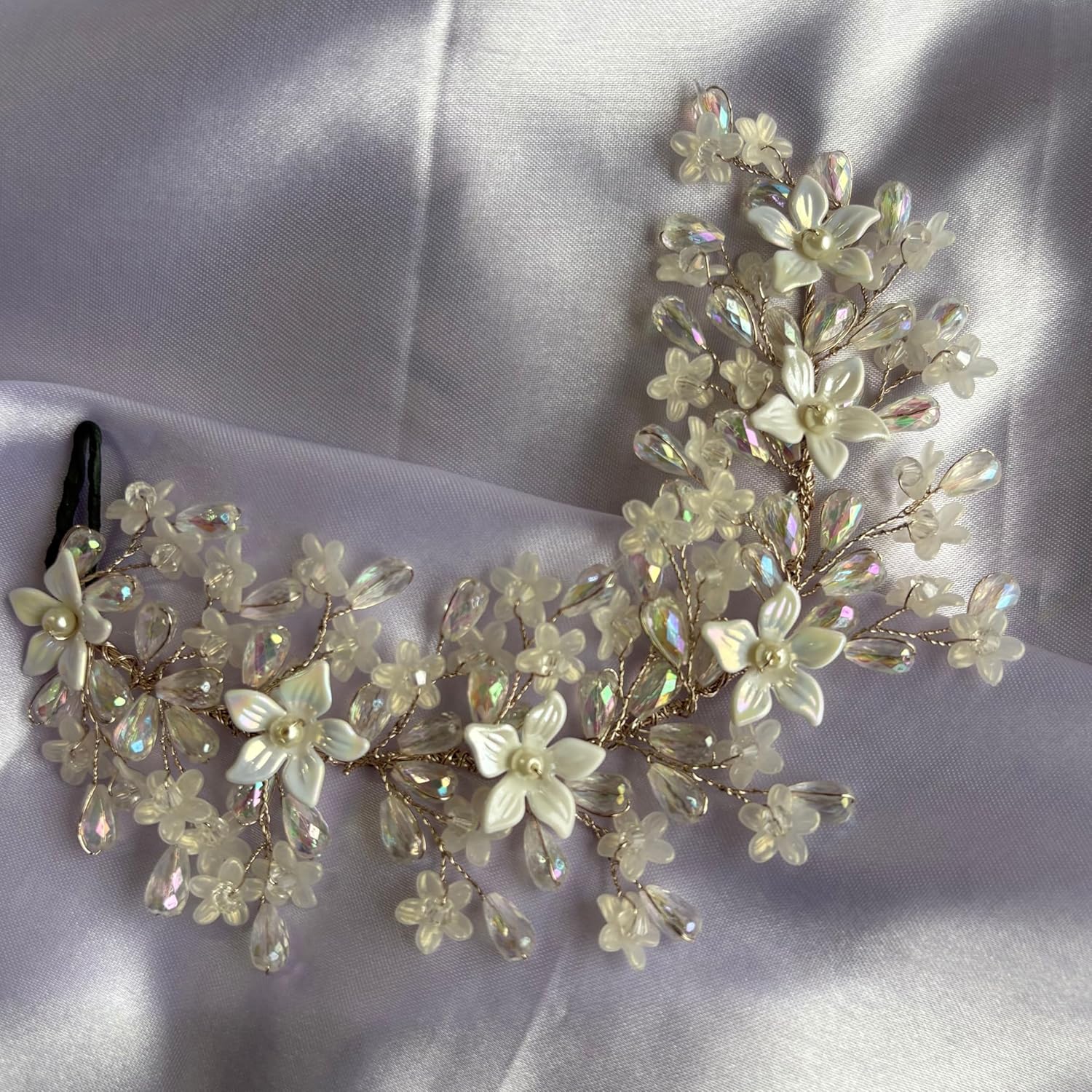LOOKS: Its floral design is sure to makes you look more elegant, charming and is sure to win you many compliments This hair accessory is handcrafted with beautiful pearls and crystals specifically hand woven with golden wire with loop end which does not tangle with your hair.