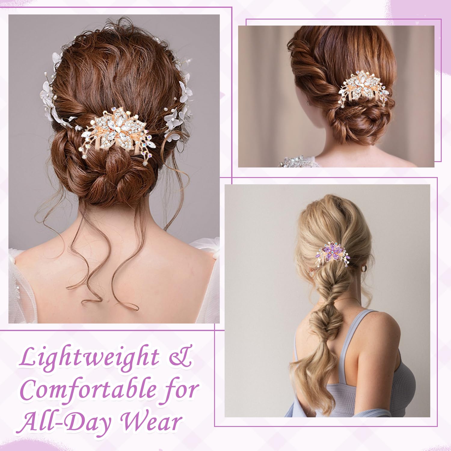 This 2-piece floral comb clip set is a beautiful and functional addition to your accessory collection, adding charm and stability to every hairstyle.