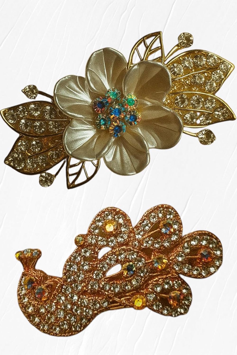 Luxe Floral Elegance of hair barrette Adorn your hair with elegance featuring floral rhinestone and glossy finish clip for timeless beauty.2 pcs of barrette contain floral and butterfly design made with Fine Alloy Material.add at touch of elegance to your hairstyle with stunning peacock and floral hair barrette clip!whether your aheading to a formal event or just want to elevate your everyday look this clip is sure to turn heads.#peacock hair clip# hair accessories #floral hair clip#elegent style.