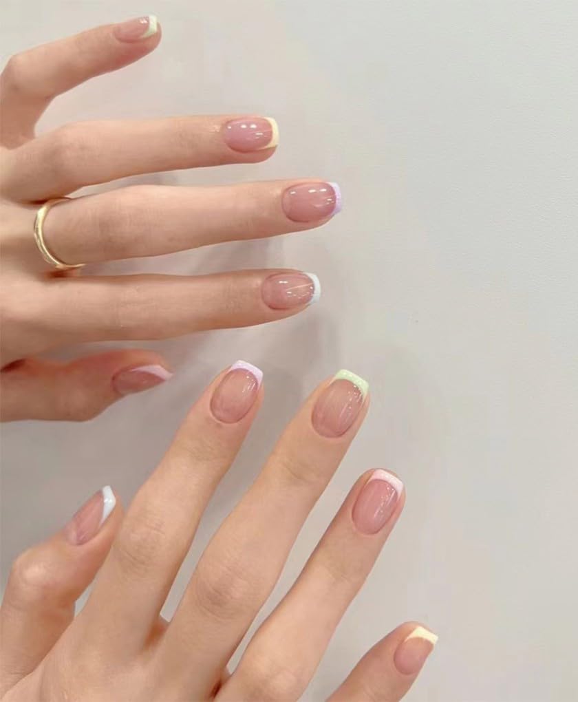 Nakhi Pastel Rainbow French Tip Press-On Nails: Your At-Home Salon Experience “Step into a world of effortless style and flawless beauty with the Nakhi 24 Pcs Pastel French Tip Press-On Nails. Forget expensive and time-consuming salon visits—now you can achieve a perfect, professional-looking manicure in minutes, right from the comfort of your home. This stunning reusable acrylic nail kit features a chic and trendy pastel rainbow design on a classic French tip. The soft, multi-colored tips in yellow, pink, blue, and purple create a unique and vibrant look that is perfect for any occasion, from daily wear to parties and special events. Crafted with premium, high-quality material, these glue-on false nails are lightweight yet incredibly durable and chip-resistant. The glossy finish gives you a natural, salon-quality appearance that lasts. Each pack contains 24 pieces in multiple sizes to ensure a perfect, seamless fit for every nail. The Nakhi kit is an all-in-one solution for stunning nail art. Whether you’re a nail art enthusiast or a beginner, our ready-to-wear nails are simple to apply and remove, making them the ultimate convenient beauty accessory. Elevate your nail game and get ready to receive compliments with these gorgeous Nakhi press-on nails!”