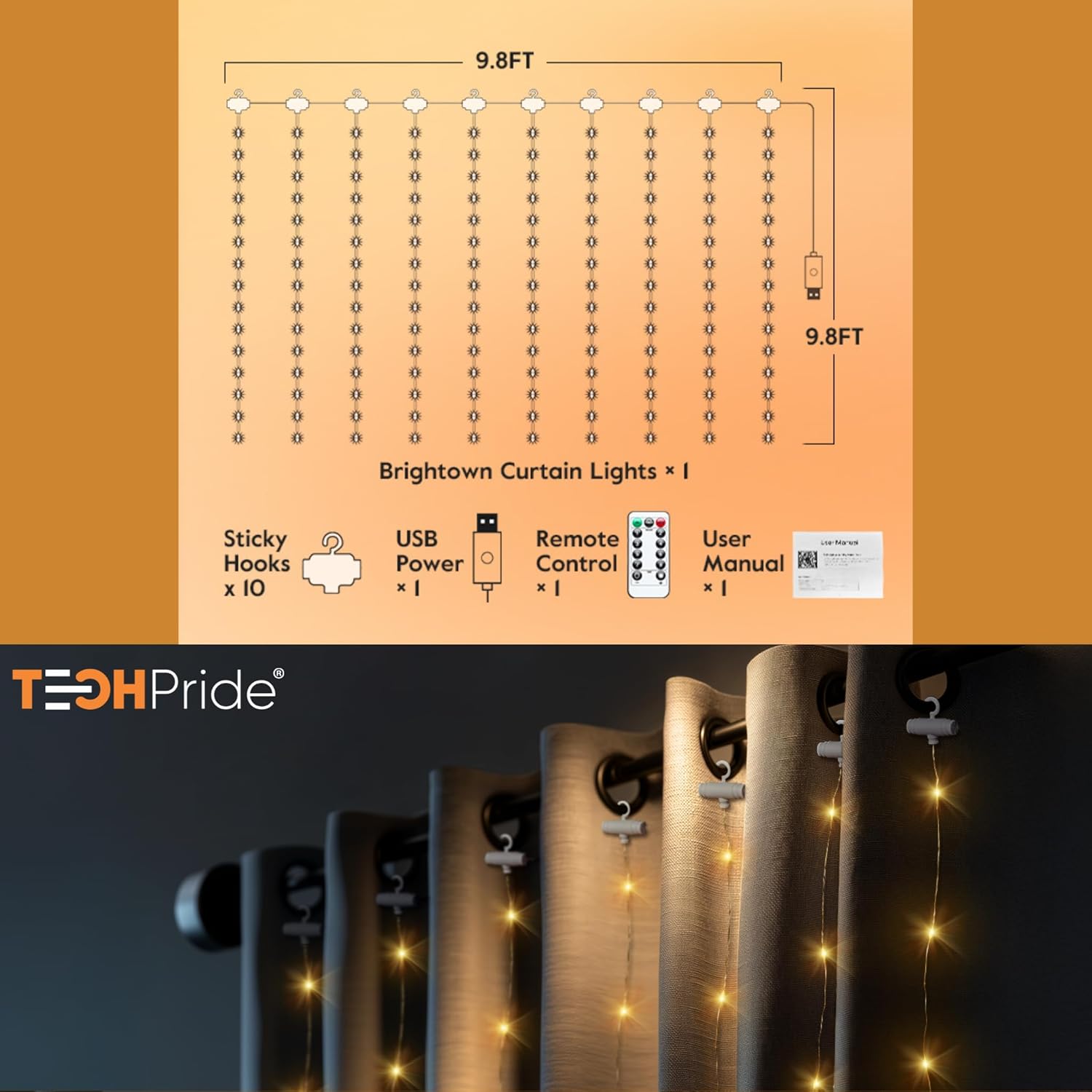 300 Brilliant Warm White LEDs: This high-density curtain design features 300 LEDs that are exquisitely distributed among the strings to cover the entire backdrop. Perfect for photo backdrops, doors, windows, balconies, and walls.