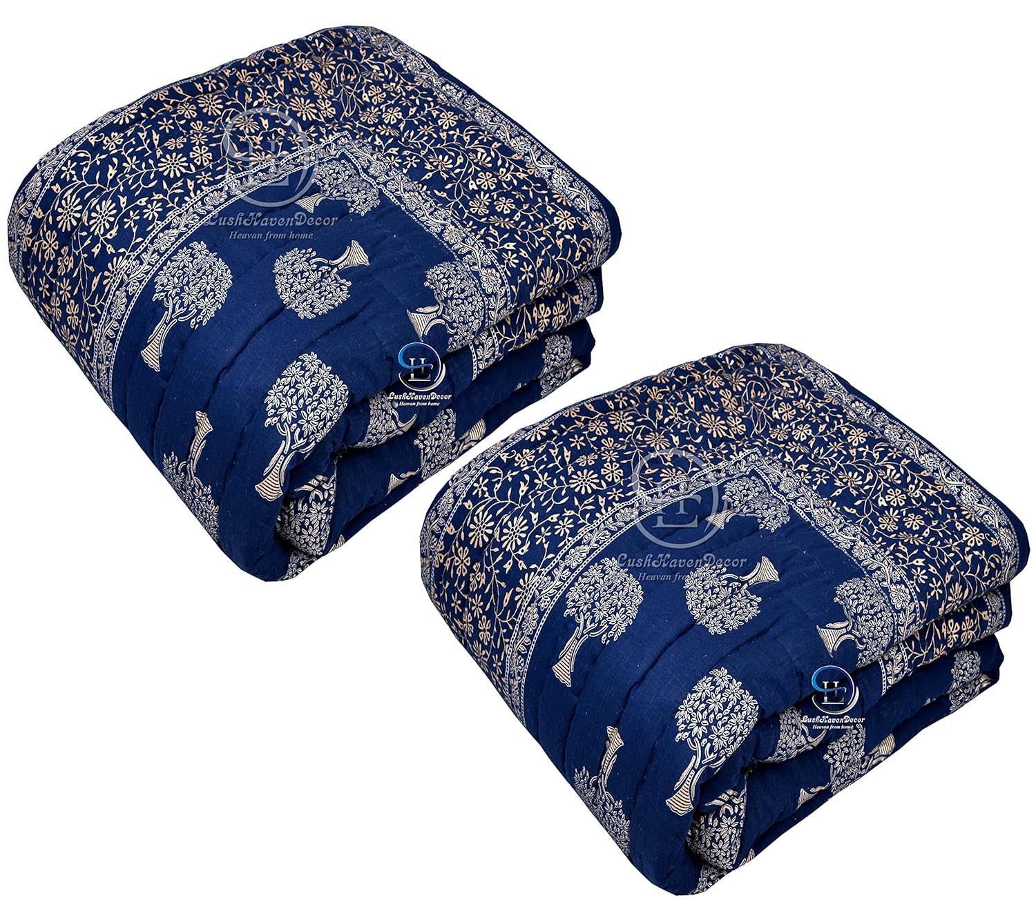 340 GSM Single Bed Jaipuri Razai Organic Pure Cotton Jaipuri rajai Ac Quilt Soft Light Weight Cotton Tree Print Comforter 55 x 85 inch (Blue, Pack of 2)