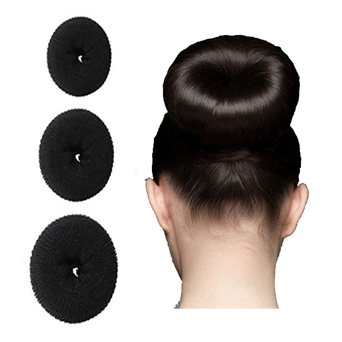 3PCS Black Bun Donuts For Bun Maker Juda Hair Accessories Hair Styling Tools for Bride Women/Girls(SIZE: Small, Medium and large)