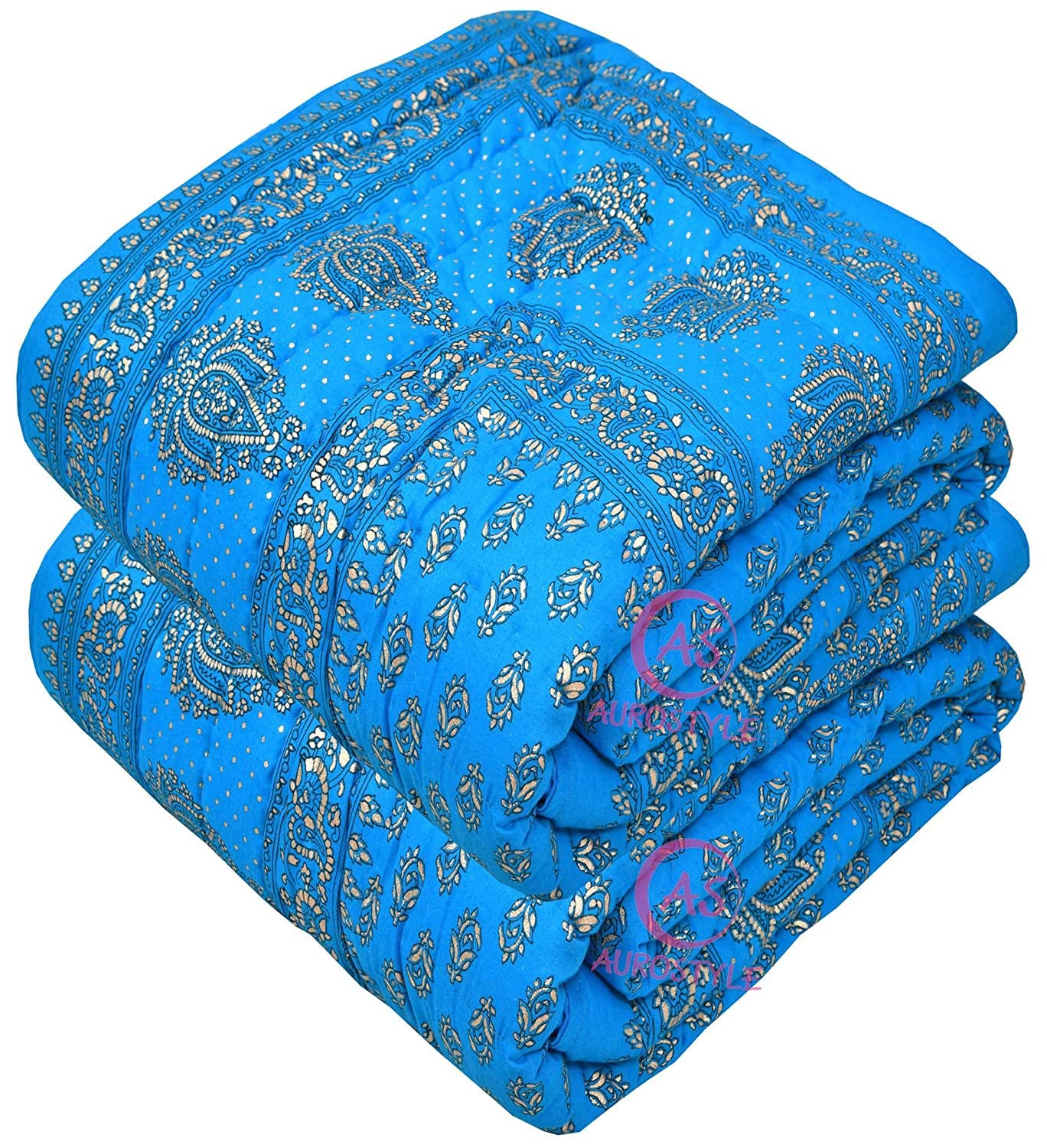 - ✔Material: Screen Printed 100% Cotton Fabric & other side Matching Plain cotton Soft, Pure Cotton & lightweight Jaipuri Rajai/Quilt.