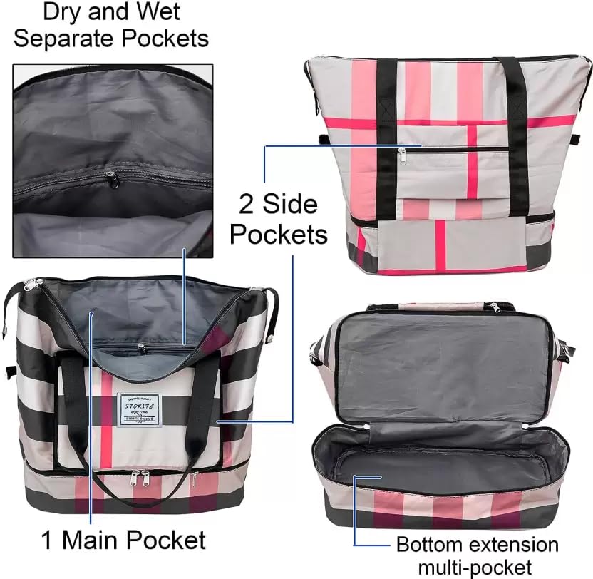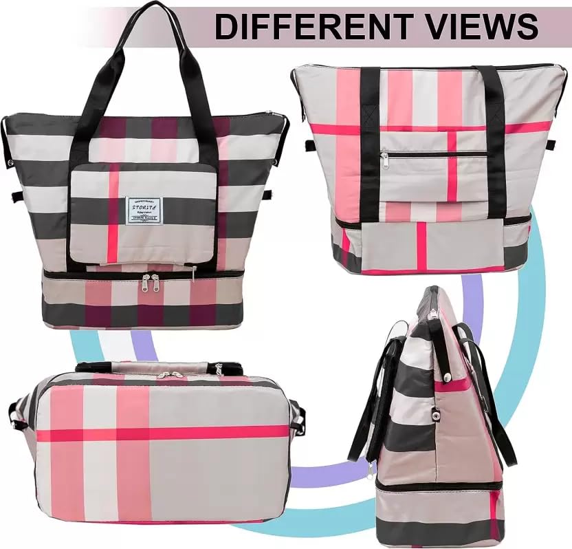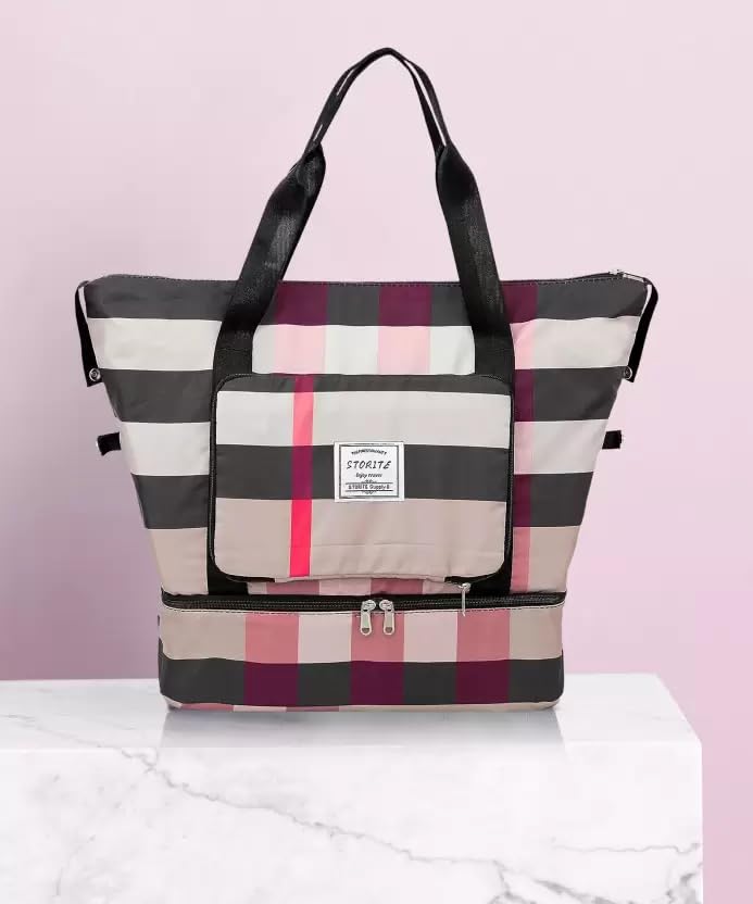 Portable, foldable, and highly practical, this women’s printed multipurpose travel duffle bag comes with an innovative expansion feature. It sports a zippered bottom extension that creates a separate compartment for carrying shoes, soiled or wet clothes, towels, swimwear, and more. This helps keep your damp or smelly belongings away from the rest of the items, thus maintaining a clean, odour-free environment in the main compartment.