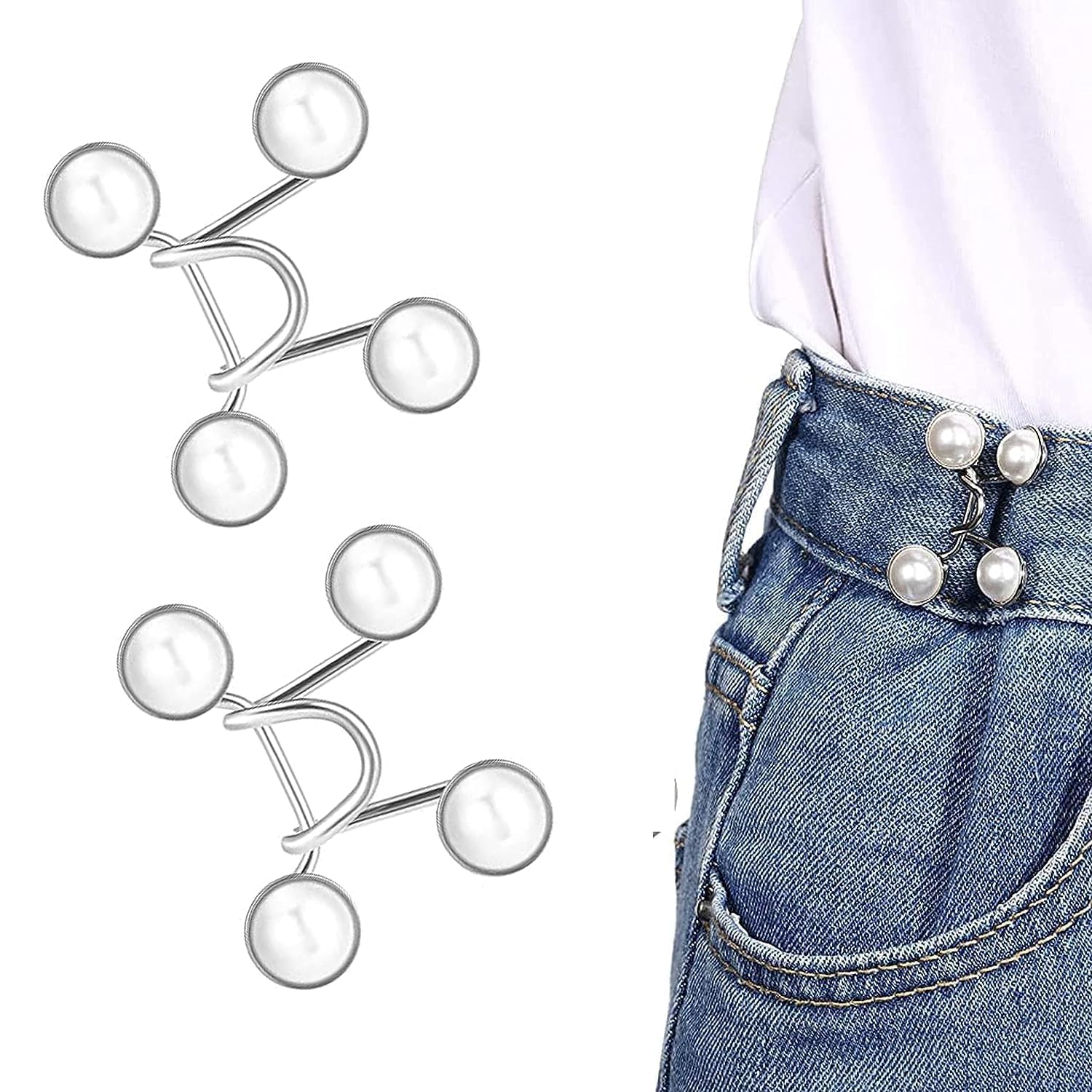 4pic Adjustable Waist Buckle for Loose Jeans Pants| Adjustable Waist Buckle for Loose Jeans Pants| Waist Tightener Instant Clips for Loose Jeans Skirts| Pearl And Diamond