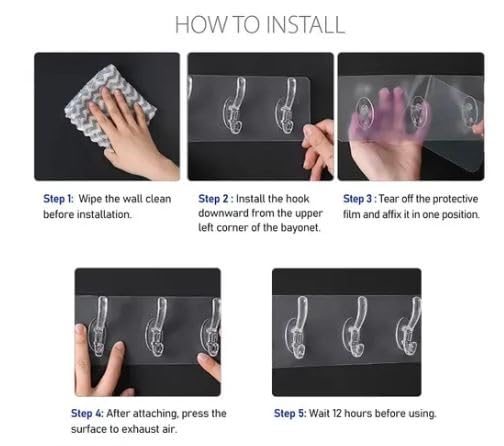 6 in 1 Self Adhesive Wall Hooks, Heavy Duty Sticky Hooks for Hanging, Waterproof Transparent Adhesive Hooks for Wall, Wall Hangers for Hanging Kitchen Bathroom Bedroom Accessories (Pack of 3)