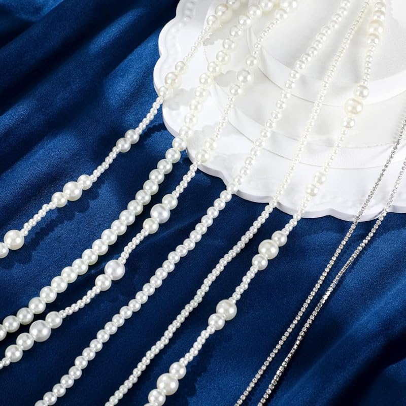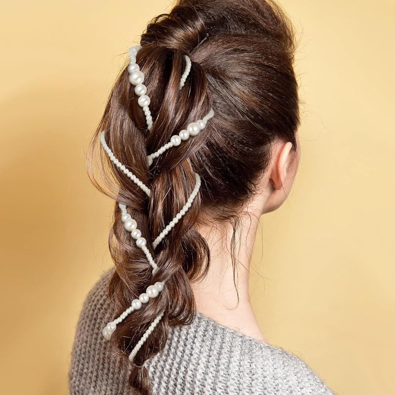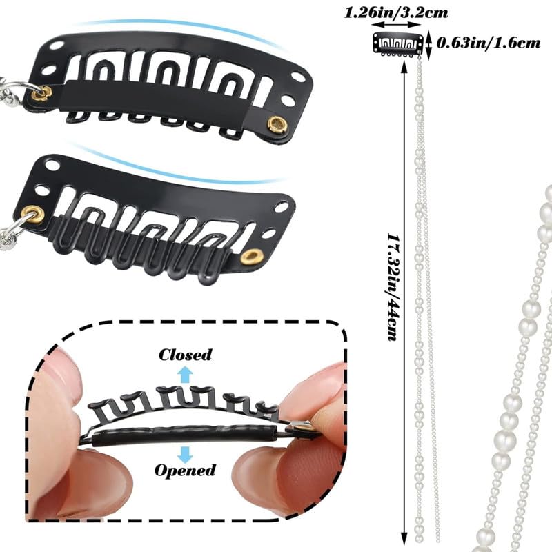 6 Pcs Premium Hair Clip, Hair Accessories Set of 6 – Rhinestone Hair Chains & Pearl Hair Extensions with Invisible Black Hair Clips for Braids for Women