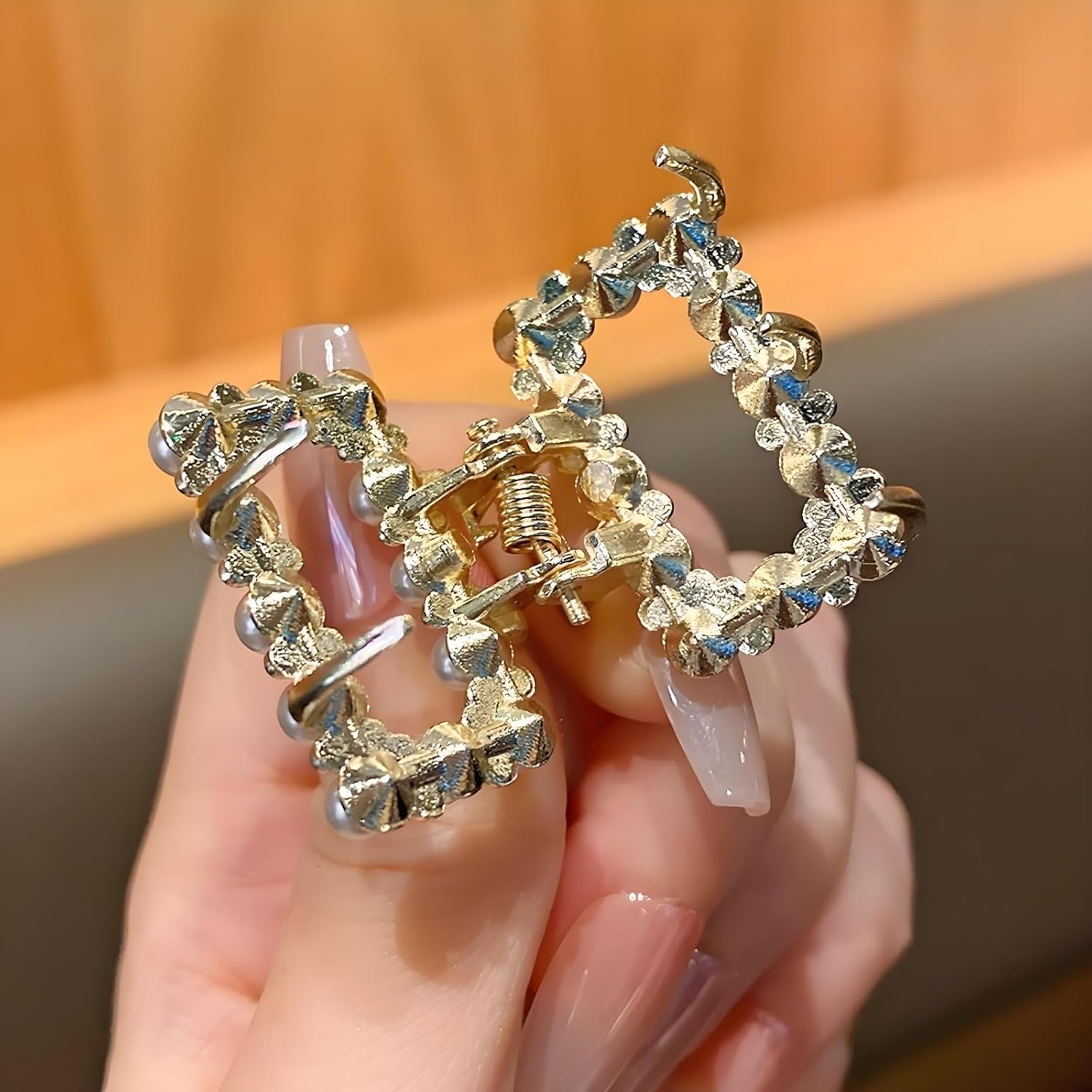 Elegant Design: Hair clip for women featuring delicate mini pearl accents and sparkling stone details; These hair clutchers for women offer sophisticated styling options for various occasions; The diamond hair accessories elevate your look with subtle shimmer and refined elegance