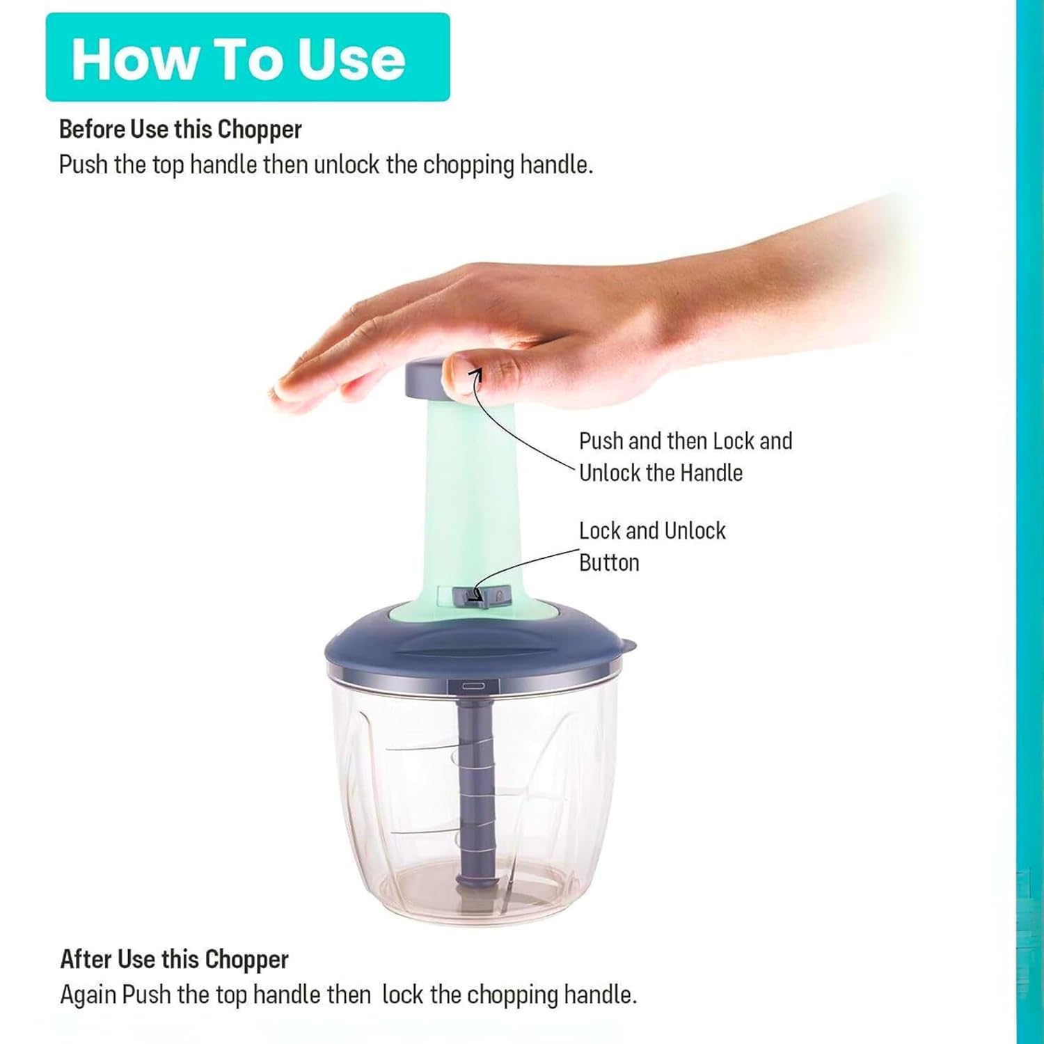 Push Slap Chopping : Chop like a pro , this manual chopper is perfect for slicing and dicing all your favorite vegetables with ease and precision. Mini manual machine helps in all meal prep be it Lunch,Chatni,dry fruits for dessert or ginger garlic for sabji & Bhaji