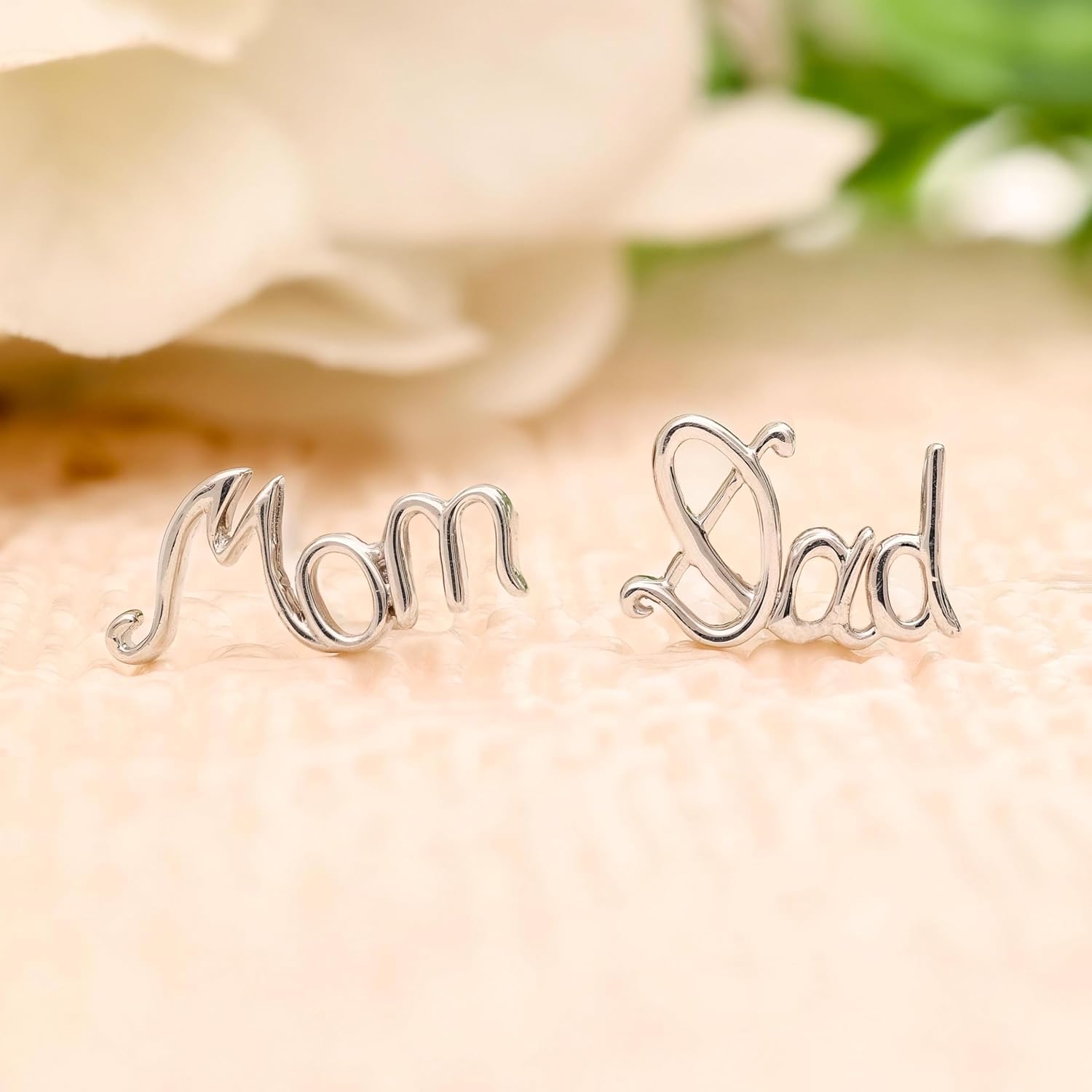 925 Silver Jewellery for Women Mom Dad Studs Minimalist Name Earrings Parents Day Gift Baby Shower Jewelry | 925 Stamp, Warranty & Authenticity Certificate