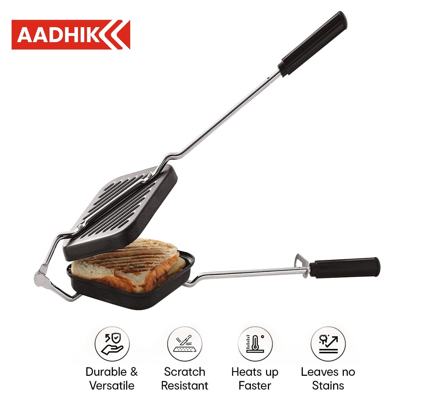 ✅ SUPERIOR QUALITY: Sandwich Toaster is made of premium quality material and is perfect for making sandwiches on gas. The non stick plates of the toaster grill is coated with superior quality teflon which does not require the usage of oil or butter to remove the sandwich