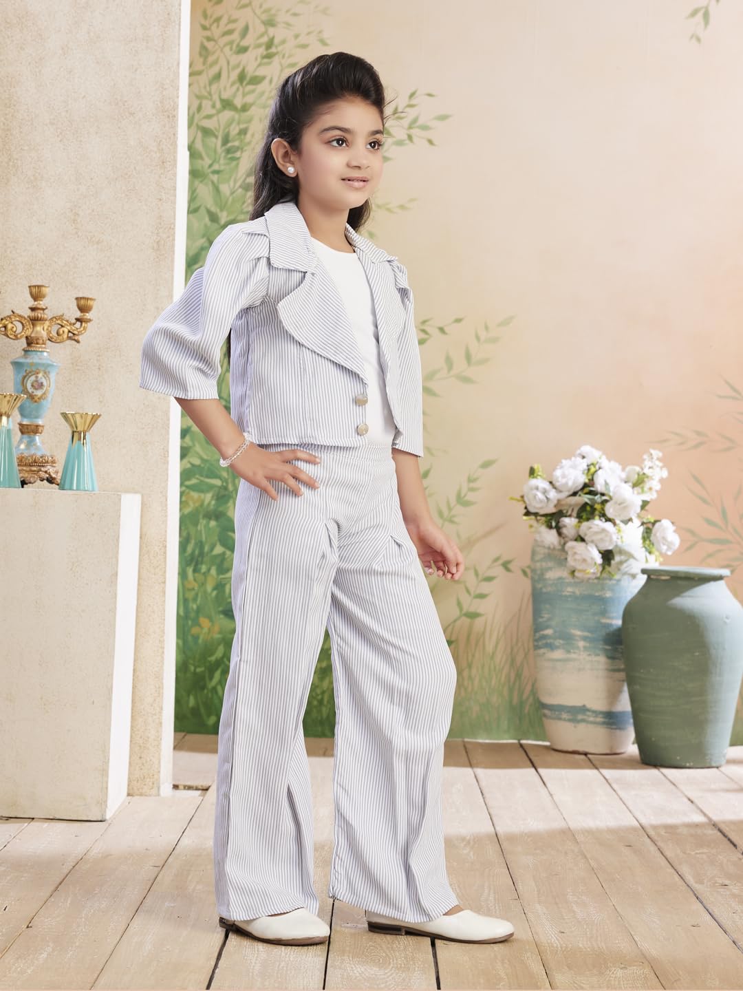 Aarika Girls Blue Colour Strips Polyester Co-ord Set