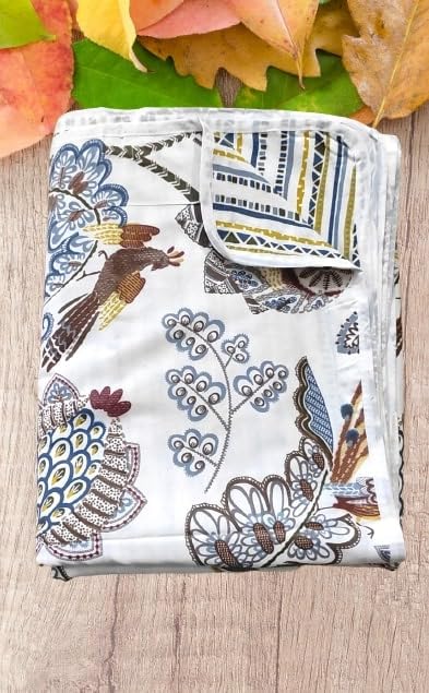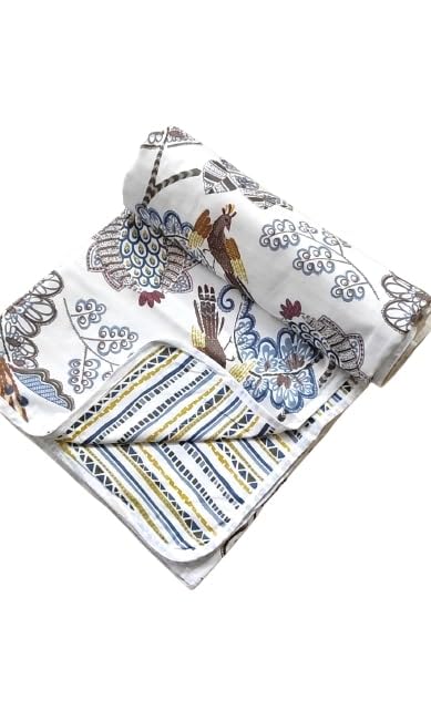 AASHIRWAD Reversible 100% Cotton Reversible Dohar Single Bed Size | Jaipuri Printed Artisan Block Design Blanket | Soft Lightweight AC Summer Comforter Quilt (Multicolor, Design 7)