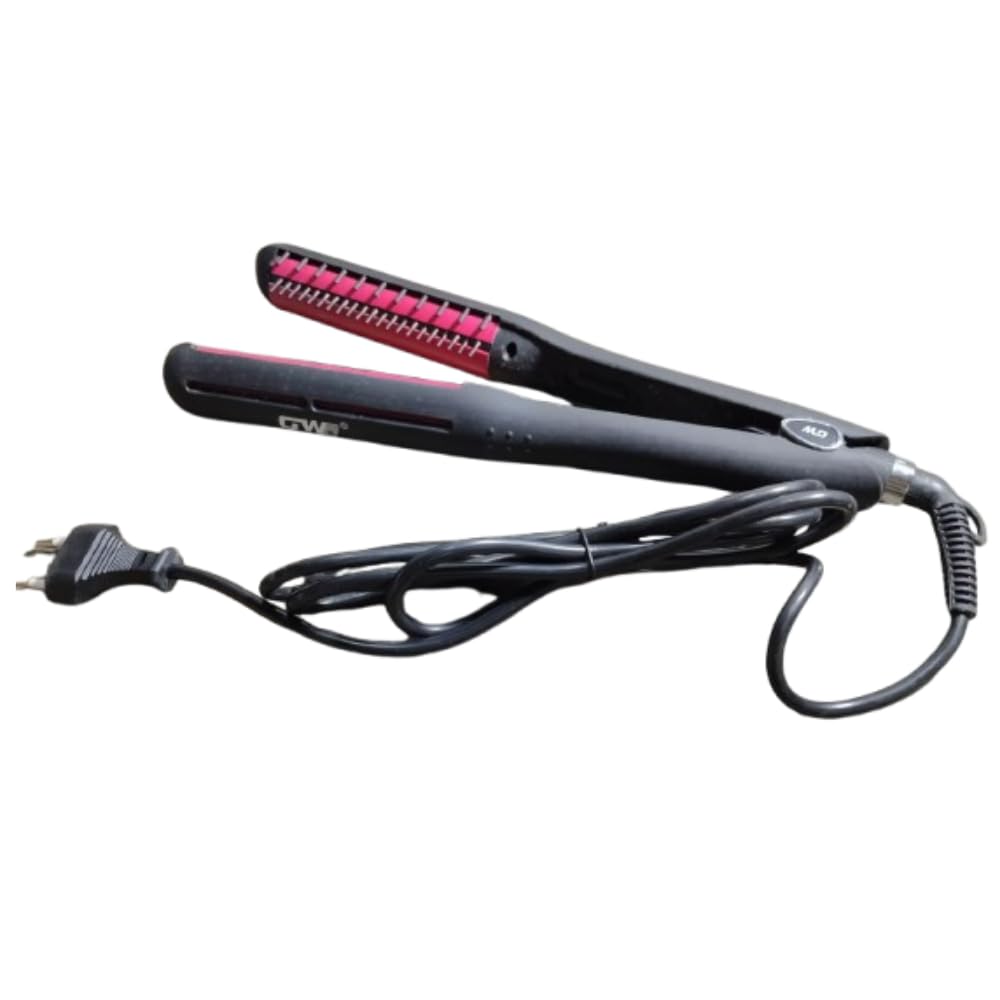 Transform your hair styling routine with this professional-grade hair straightener. The innovative design combines straightening and brushing capabilities with ionic technology for smoother, sleeker results. Features include adjustable temperature settings for different hair types and a quick heat-up system for efficient styling. The thoughtfully designed brush teeth help prevent tangling while smoothing hair, and the ergonomic handle ensures comfortable grip during use. The black and pink colour scheme adds a stylish touch to this practical tool. The thermo-protect feature helps maintain optimal styling temperature, while the anti-scald design provides added safety during use. Perfect for achieving salon-quality straight hair at home, this versatile styling tool helps manage frizz and creates a polished look. The device comes with a convenient power cord and is suitable for various hair textures. For best results, use on clean, dry hair and adjust temperature according to your hair type.