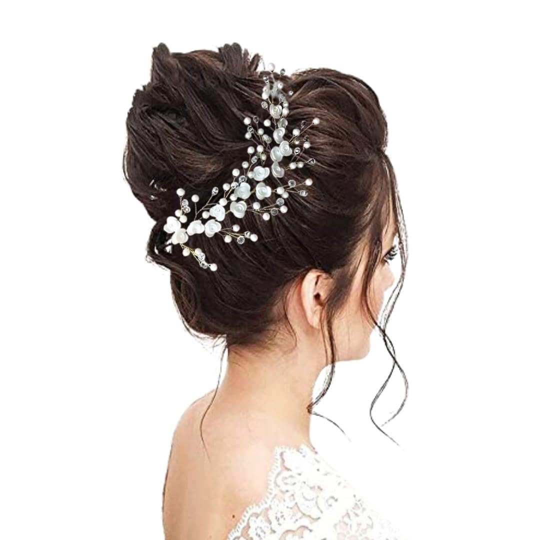 𝐄𝐥𝐞𝐠𝐚𝐧𝐭 𝐃𝐞𝐬𝐢𝐠𝐧: AccessoZone Bridal Floral Hair Accessories feature pearl and crystal embellishments that add a touch of sophistication to any hairstyle, perfect for weddings, parties, and special occasions.