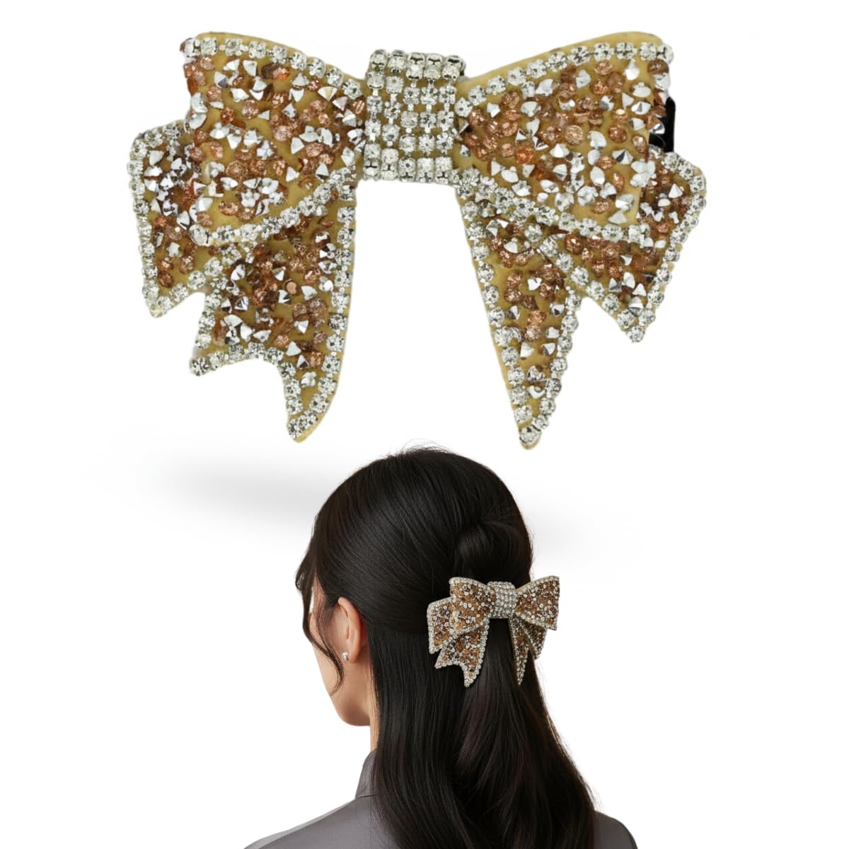 Acrylic Bow Hair Pin for Girls & Women | Stylish Hair Clip with Crystal Rhinestone Embellishments | Party Bun & Open Hair Accessory for All Occasions (Rose Gold)