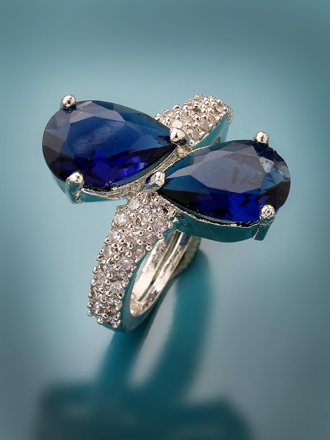 Adiva Blue AD Stone-Studded Brass Adjustable Finger Ring For Women & Girls