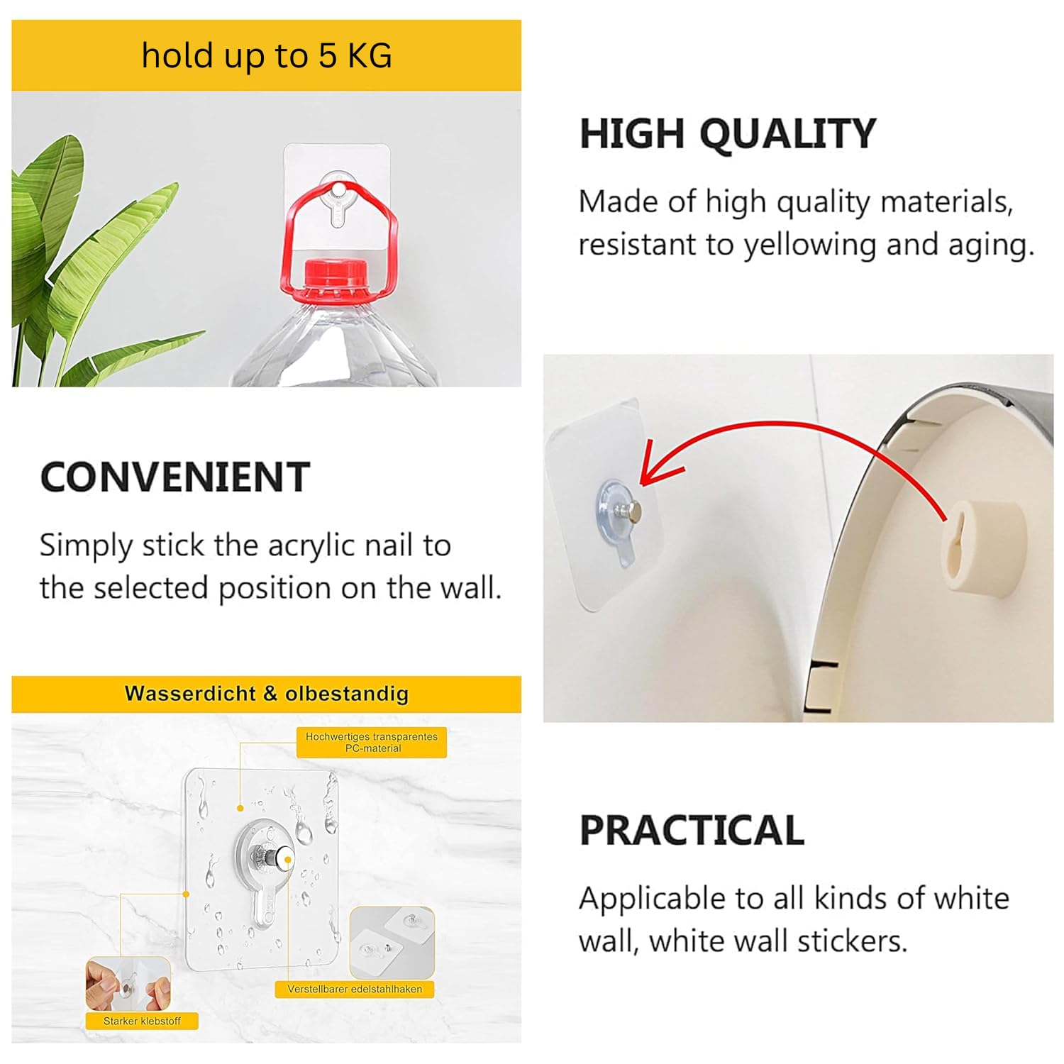ADL PASSION Self Adhesive Screw Wall Hooks, Heavy Duty Sticky Hooks for Hanging Photo Frame, Waterproof Transparent Adhesive Hooks for Kitchen, Bathroom(Pack of 10)