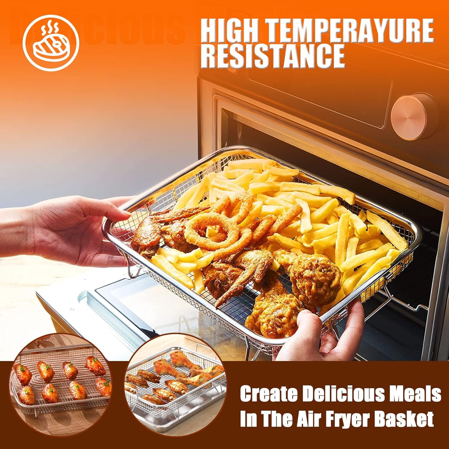 Multipurpose – Crispy Baskets and Baking Pans are perfect for frying a variety of foods including crispy bacon, crispy chicken, french fries, chicken, crispy vegetables, pastries or biscuits and more, providing the perfect even crispness to all your favorite foods.