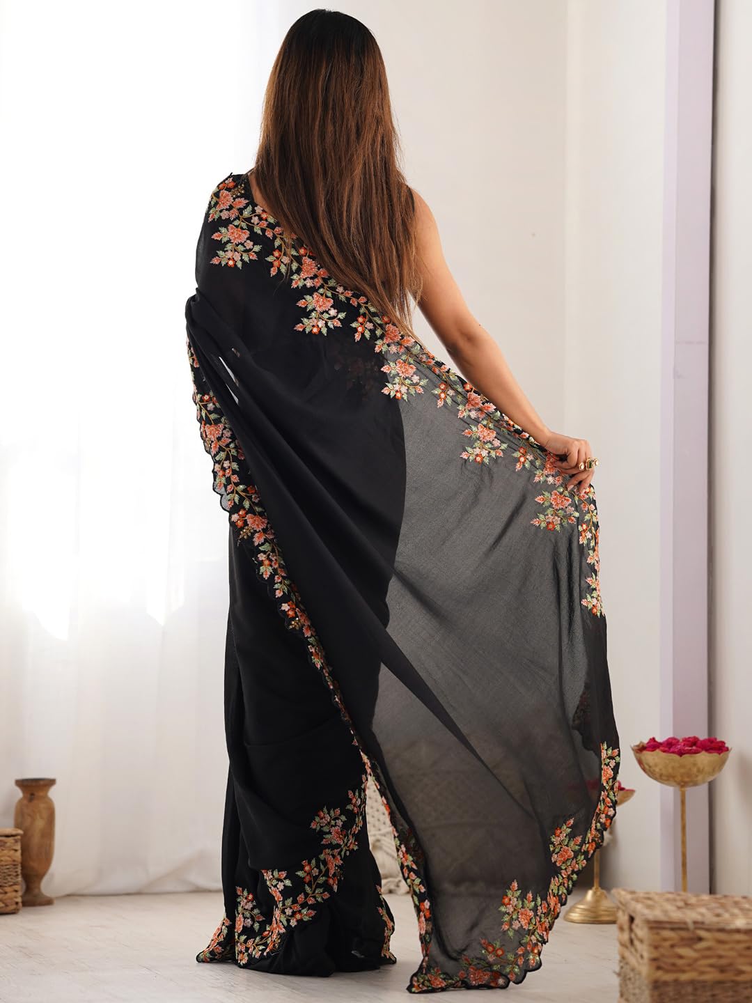 This saree from the house of AKHILAM is made from Vichitra Silk and is Black in color. AKHILAM Ethnic Sarees comes With Blouse Piece, Which can be Stitched according to Your Taste and Preference. This Saree is Crafted by Skill Craftsmen without Compromising on its Quality. With This Beautiful Design and Fabric, This Saree will fetch You Oodles of Compliments and Praise. saree fit size is 5.5 mtr saree & 0.8 mtr blouse, Free Size |.