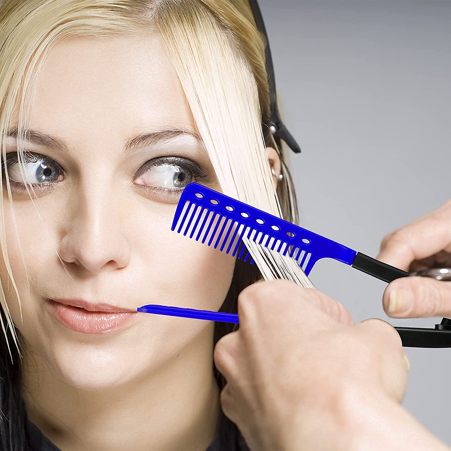 Alexvyan Pink Straightening Comb Salon Hair Brush Combs Hairdressing Styling Hair Straightener V-shaped Straight Comb Straightener Comb for Knotty Hair (Blue)