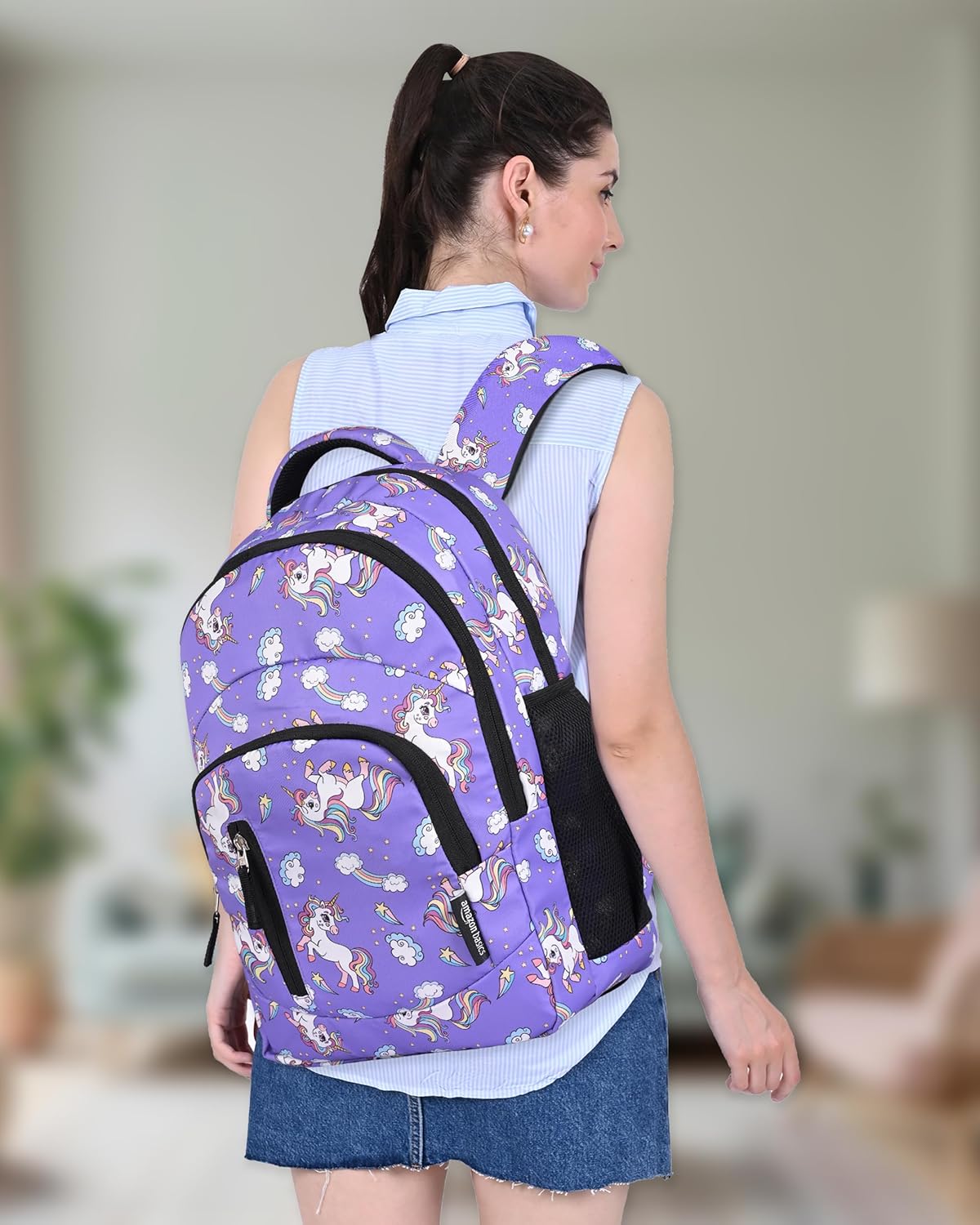 Introducing the Amazon Basics Lightweight Polyester Backpack for School, College & Travel. Crafted from durable, high-quality polyester, this backpack is designed to withstand daily wear and tear, ensuring long-lasting use. Its lightweight and comfortable build makes it easy to carry, whether for daily commutes or travel. Featuring multiple compartments and side pockets, it offers organized storage for smaller items like keys, pens, and snacks, keeping everything within reach. The stylish unicorn design adds a modern touch, combining practicality with contemporary aesthetics. With ample space for books, gadgets, and other essentials, this backpack is perfect for college, school, travel, or everyday use.