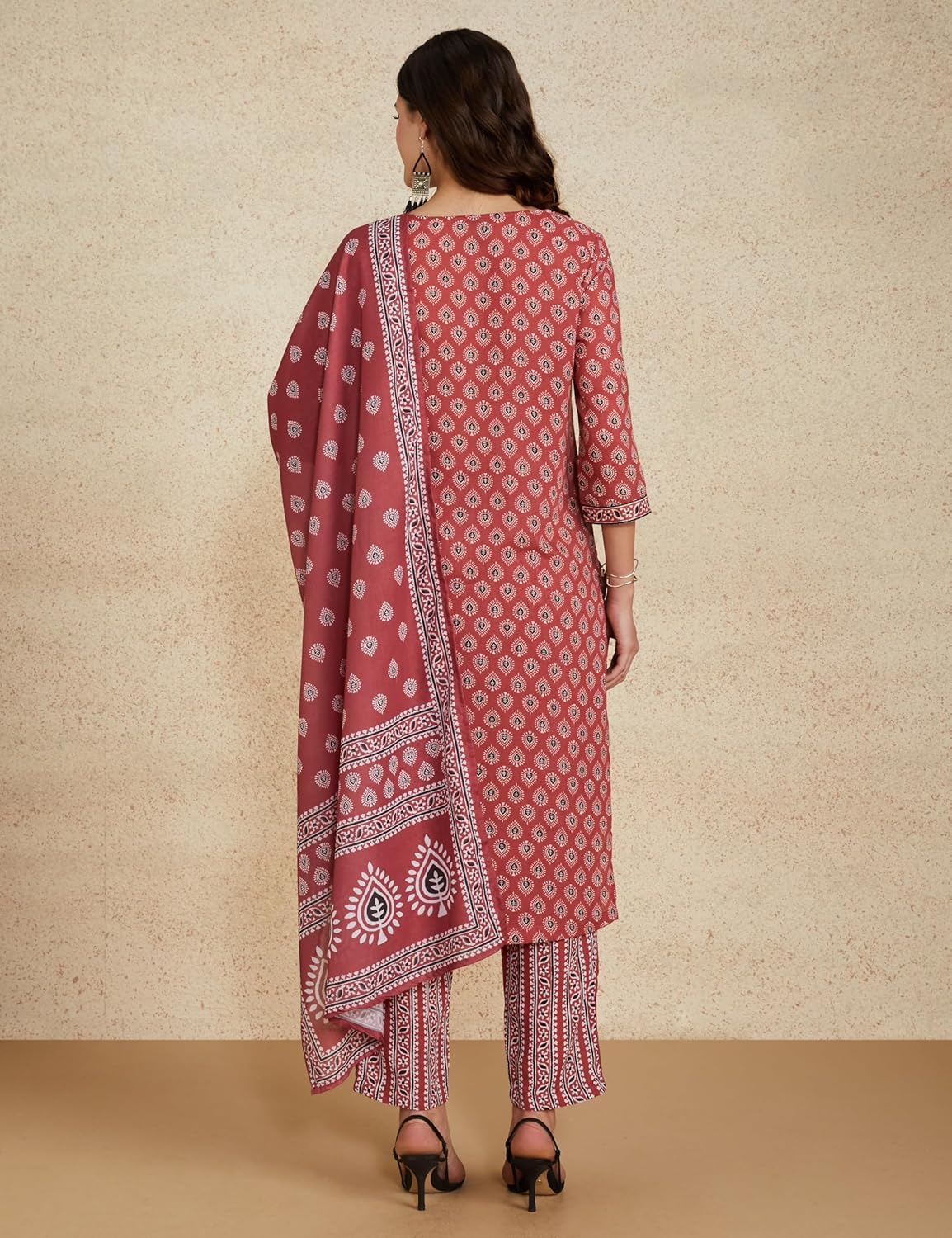 Amazon Brand – Myx presents a thoughtfully designed casual and workwear collection, blending timeless elegance with everyday ease. This exquisite 3-piece salwar suit set is crafted for effortless grace, featuring a block print-inspired design that echoes the traditional craftsmanship of Jaipur’s artisans.