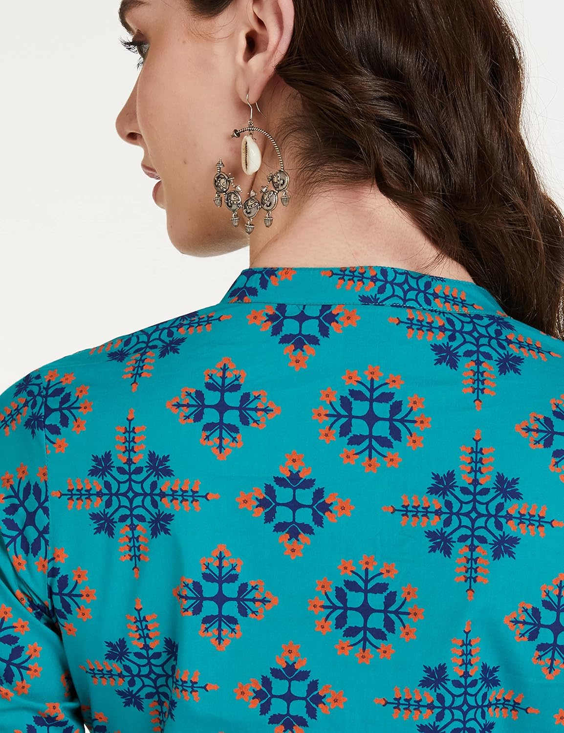 Amazon Brand – Myx Women Printed Regular Cotton Short Kurti (Available in Plus Sizes)