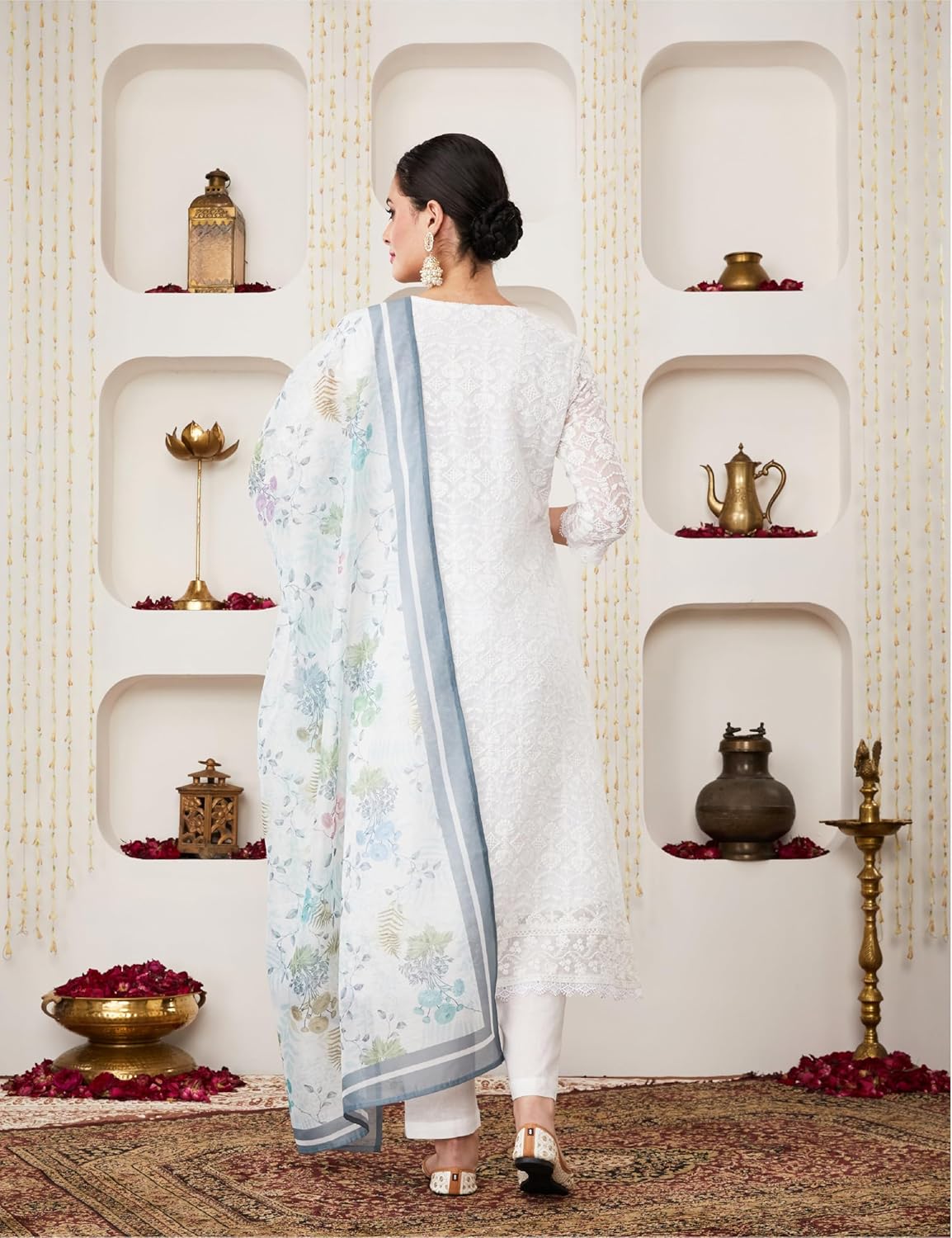 Generic Name : Chikankari A-Line Kurta Pant Set with Dupatta | Available in Plus Sizes