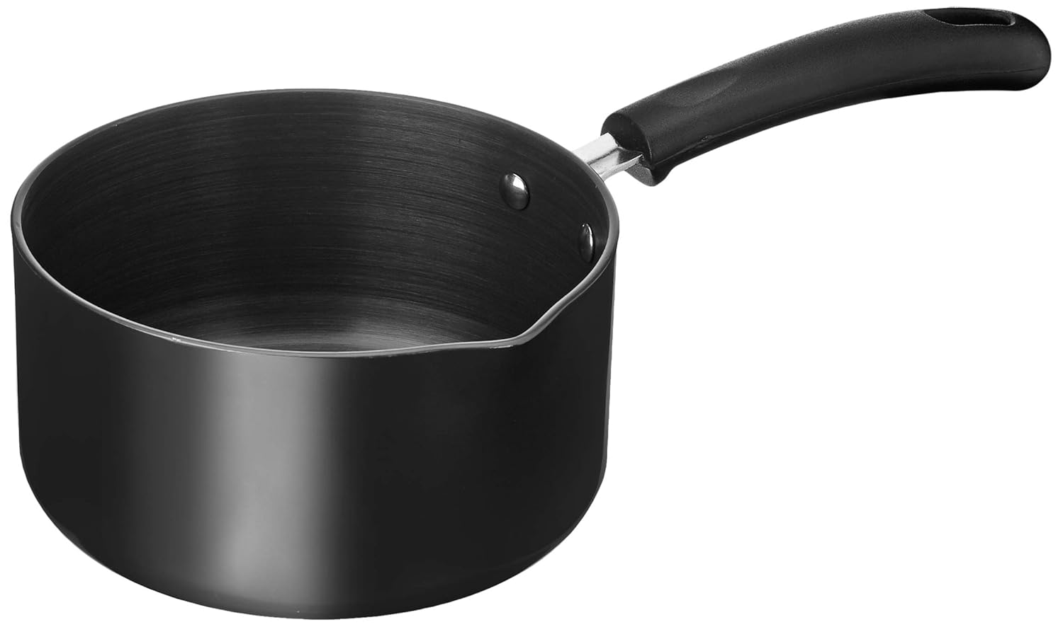 Amazon Brand – Solimo Hard Anodized Aluminium Saucepan with Bakelite Handle | 1.5 litres | 28cm, 3mm thickness | for Boiling Milk, Making Tea, Coffee | Black