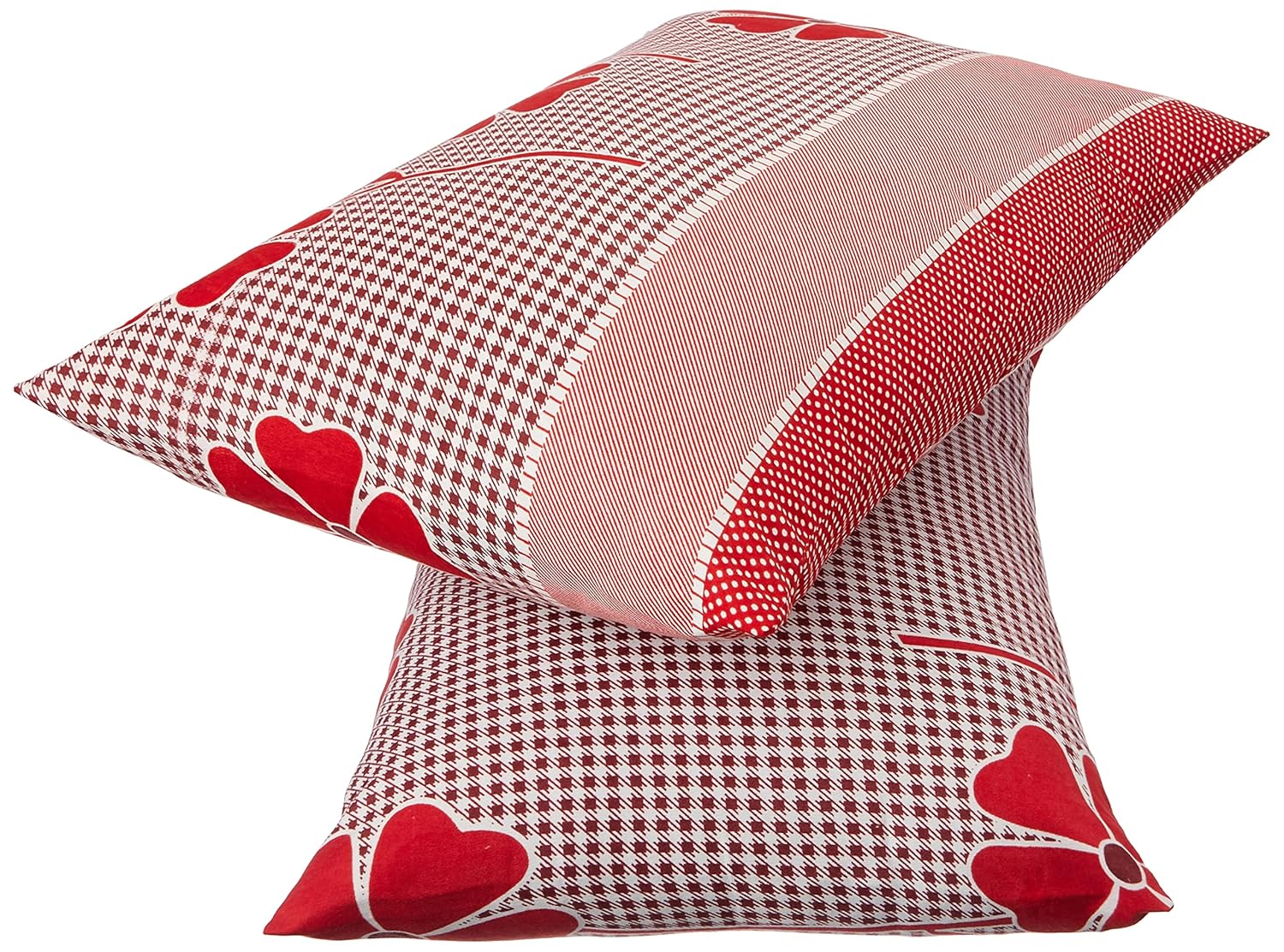 Amazon Brand – Solimo Polycotton Dreamy Red Double Bedsheet with 2 Pillow Cover,Multicolor,95 GSM,144 TC