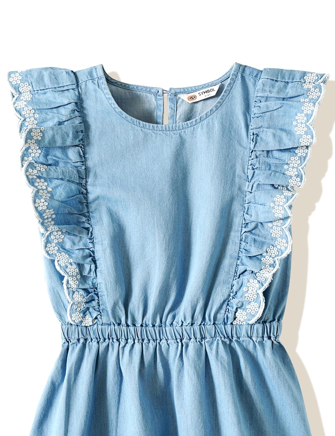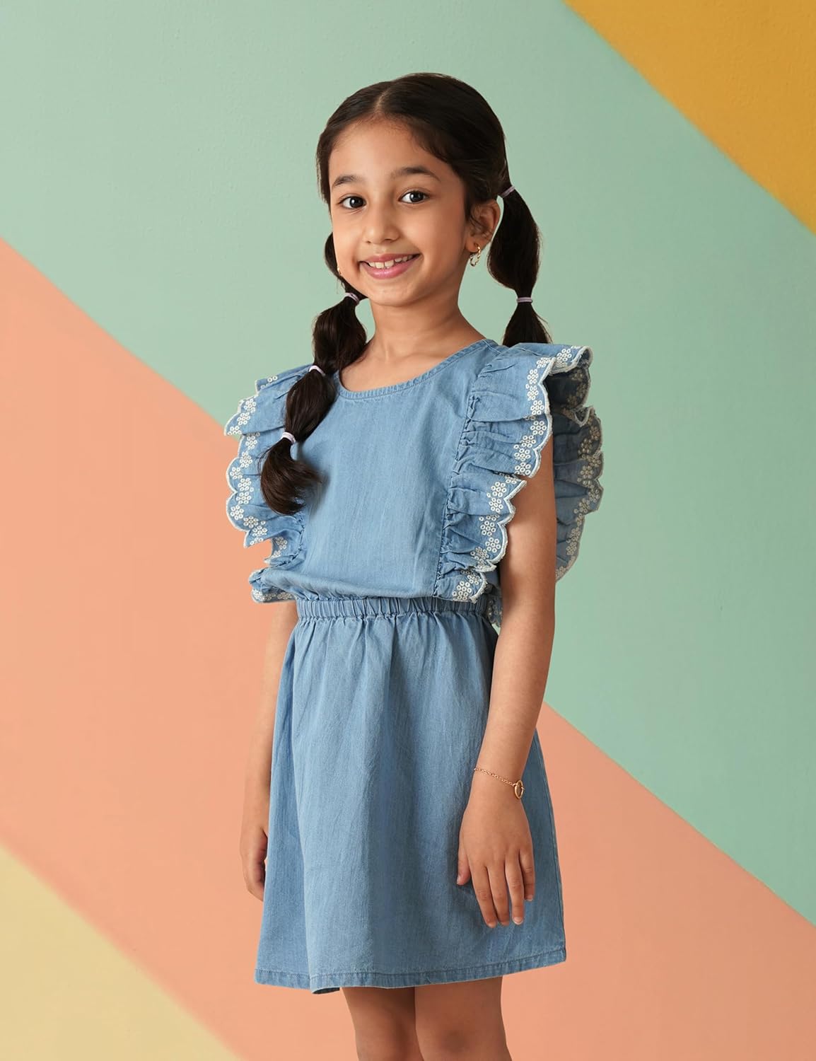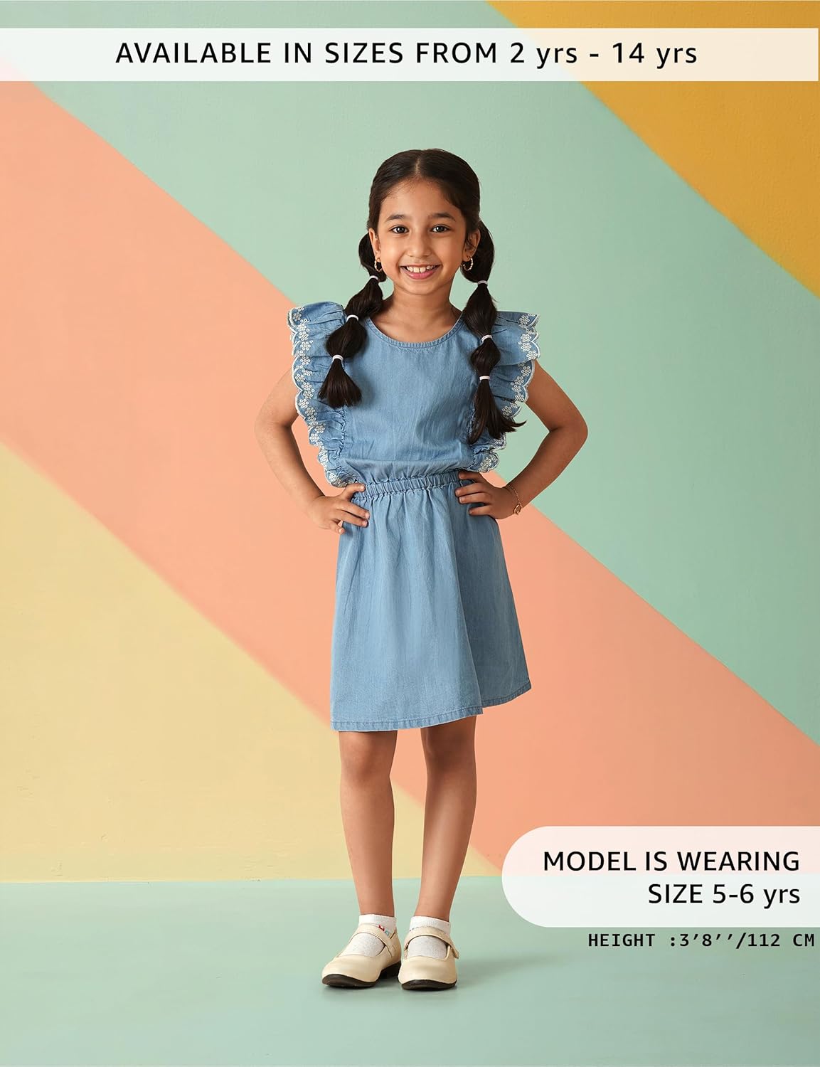 Amazon Brand – Symbol Girl’s Denim Cotton Fit and Flare Knee-Length Casual Dress
