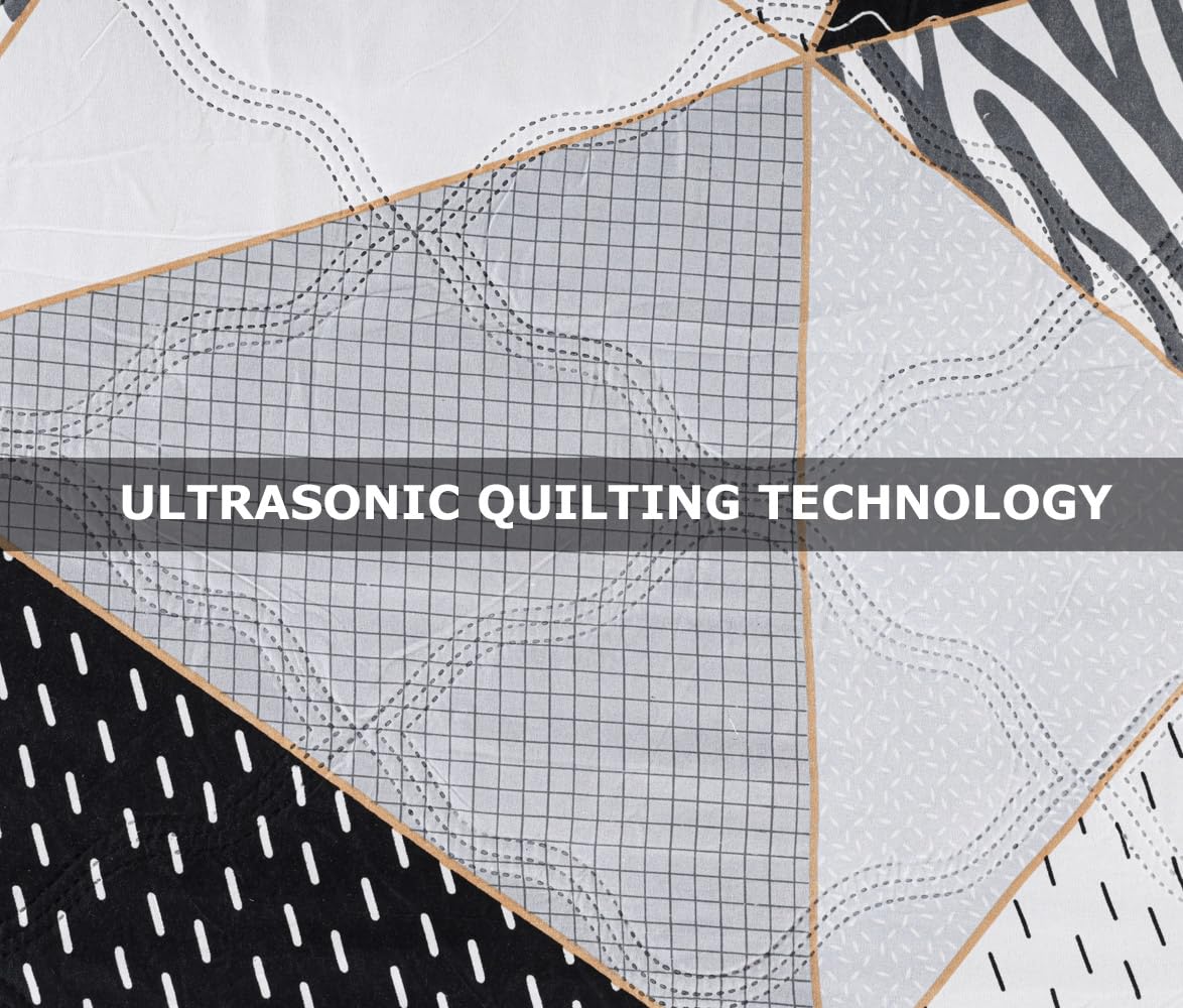 Amazon Brand – Umi 100% Cotton Quilted/Ultrasonic 280 Tc Printed King Size Soft Bed Cover/Bedsheet/Bedspread Comforter with 2 Pillow Shams/Cover, (Luxurious, 90 x100 inches, White & Grey & Black)