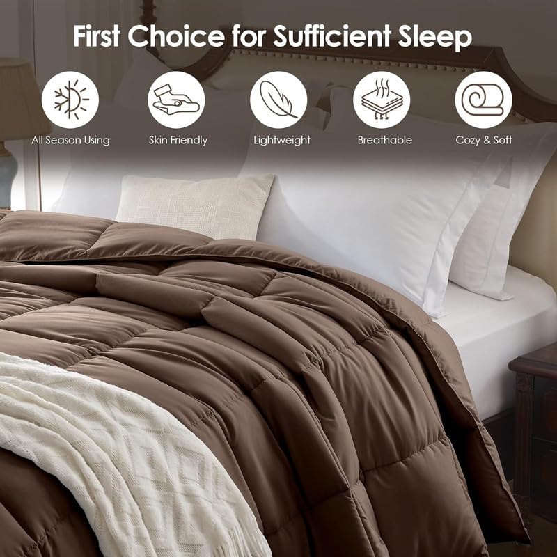 HIGH QUALITY CRAFTSMANSHIP & OUR SIGNATURE FABRIC: You spend all day working hard. You deserve quality sleep in Extremely gentle, comfortable, and smooth Down-Alternative All-Season Comforter. These are made with our signature Double-Brushed fabric. These comforters are Easy Care, breathable, double-brushed for extra softness, shrinkage free and fade resistant. Box stitching keeps all filling in place and prevents it from shifting.