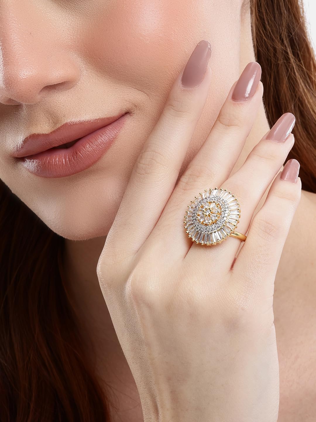 American Diamond Adjustable Ring for Women | 22k Gold Plated Finger Ring | Party & Wedding Jewelry | Bridal Engagement Ring | Ethnic Indian Jewelry | Gold Ring For Women.