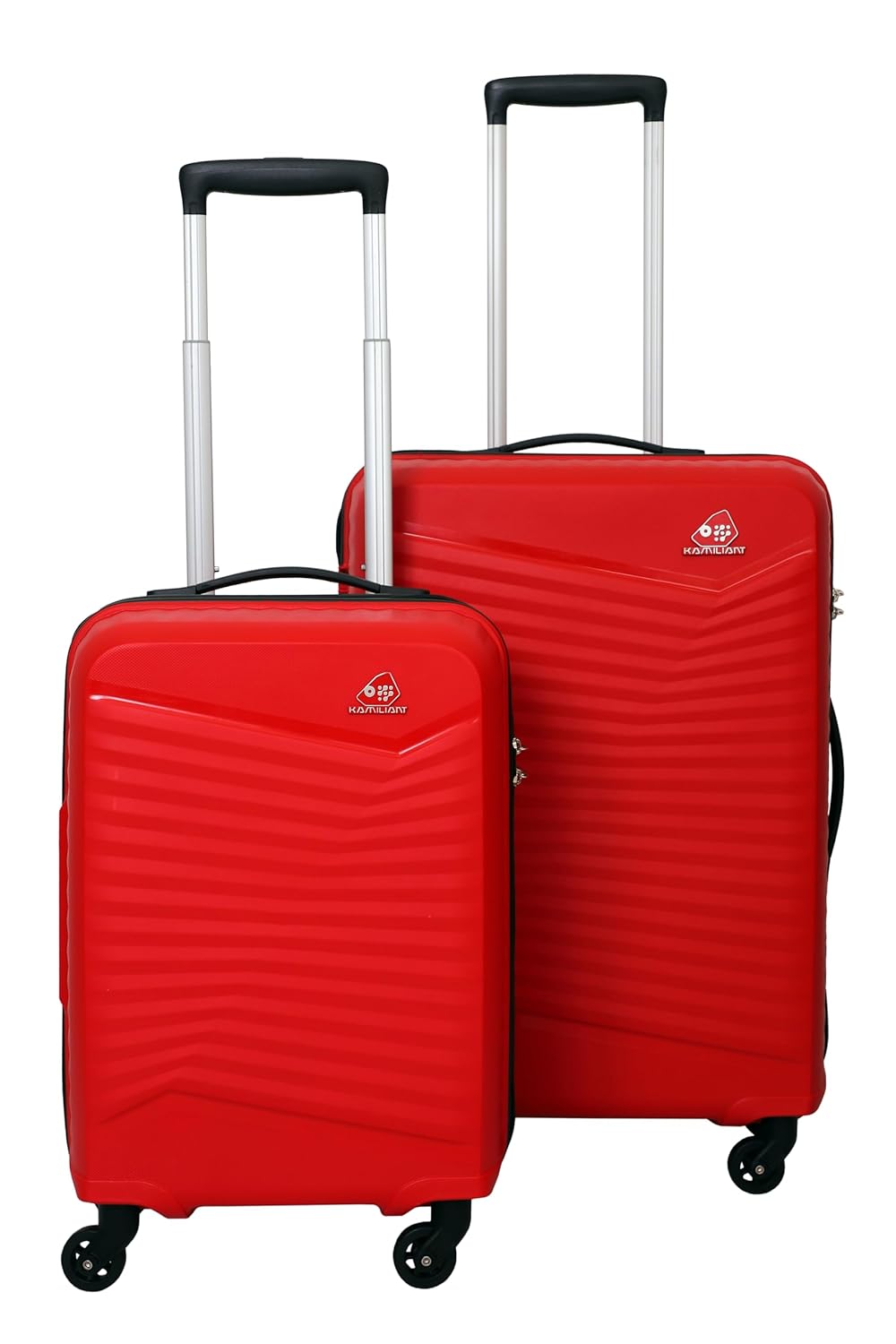 American Tourister Plastic Set Of 2 Medium And Large 4 Spinner Wheel Soft Check In Luggage Trolley Bag -68Cm And 79 Cm (Red)
