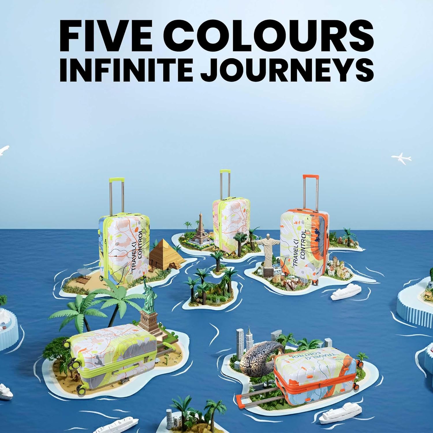American Traveller THE UPLAND Trolley Bag Set of 3 – Cabin, Medium, Large | Travel Suitcase Set | Durable Hard Shell | TSA-Type Lock | Spinner Trolley with Anti-Theft Zippers (3, Sky Blue(Light Blue))
