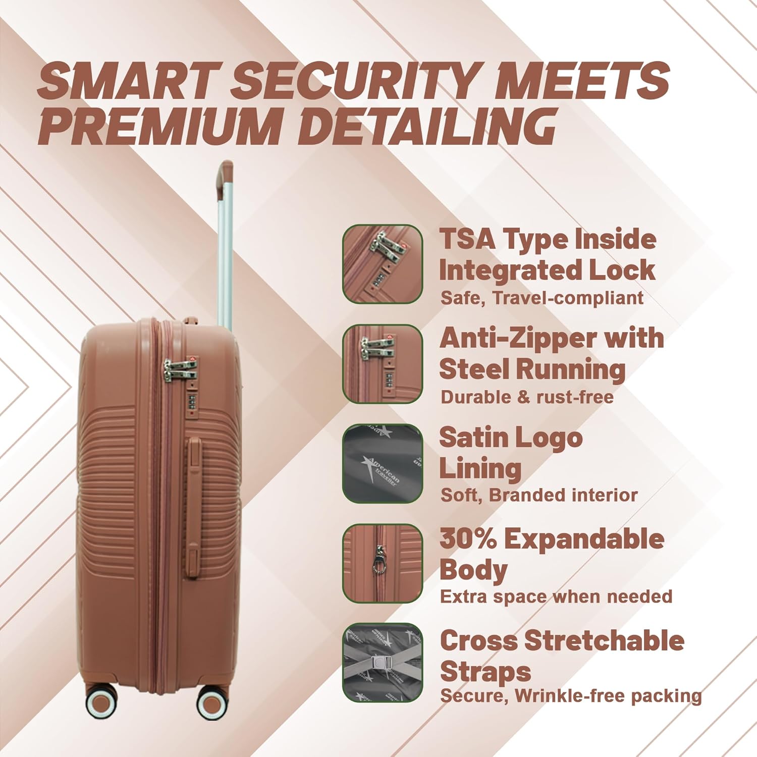 Equipped with a TSA-approved lock, this luggage offers secure international travel with hassle-free airport inspections.
